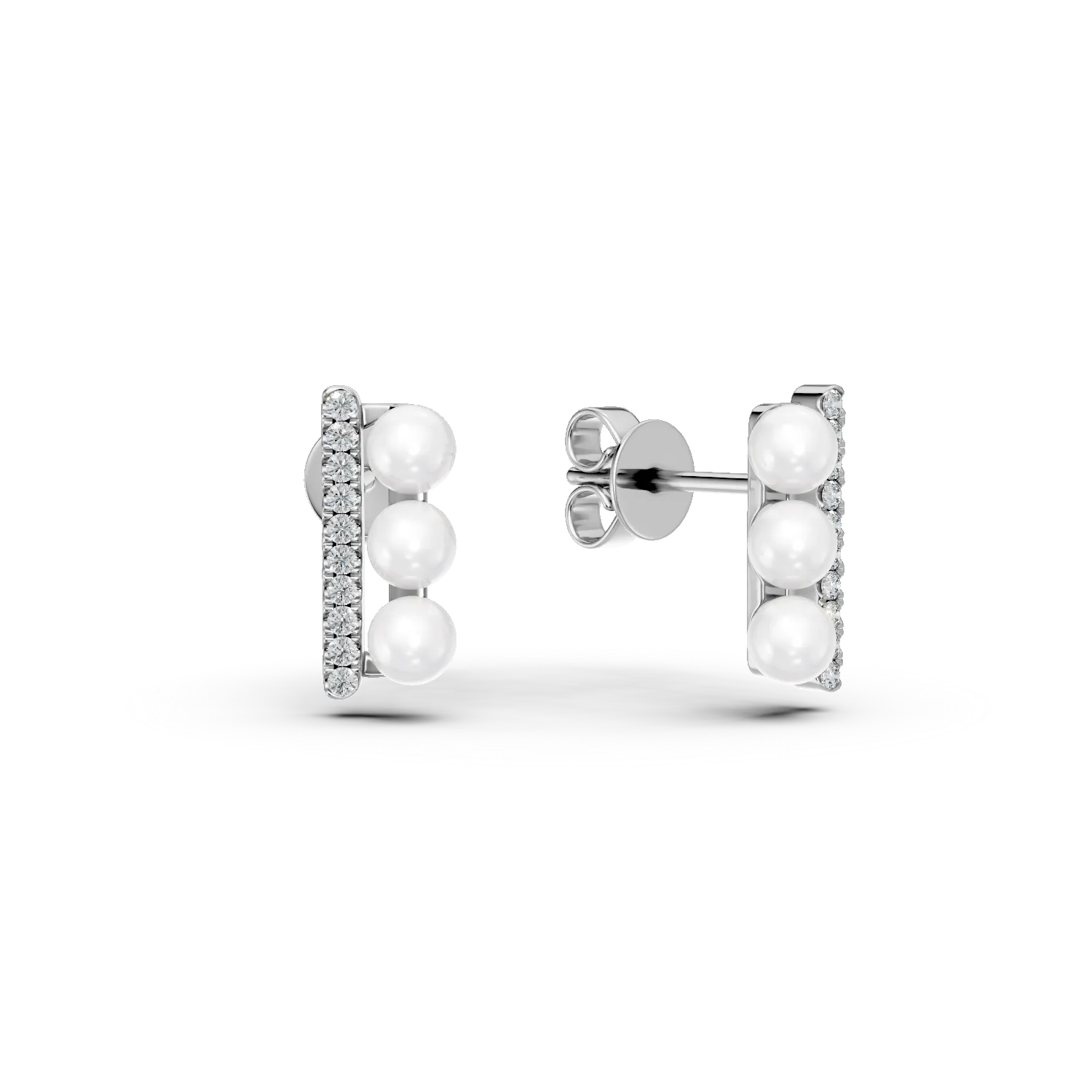 Cercei din aur alb cu perle de cultura de 1.2ct si diamante de 0.05ct