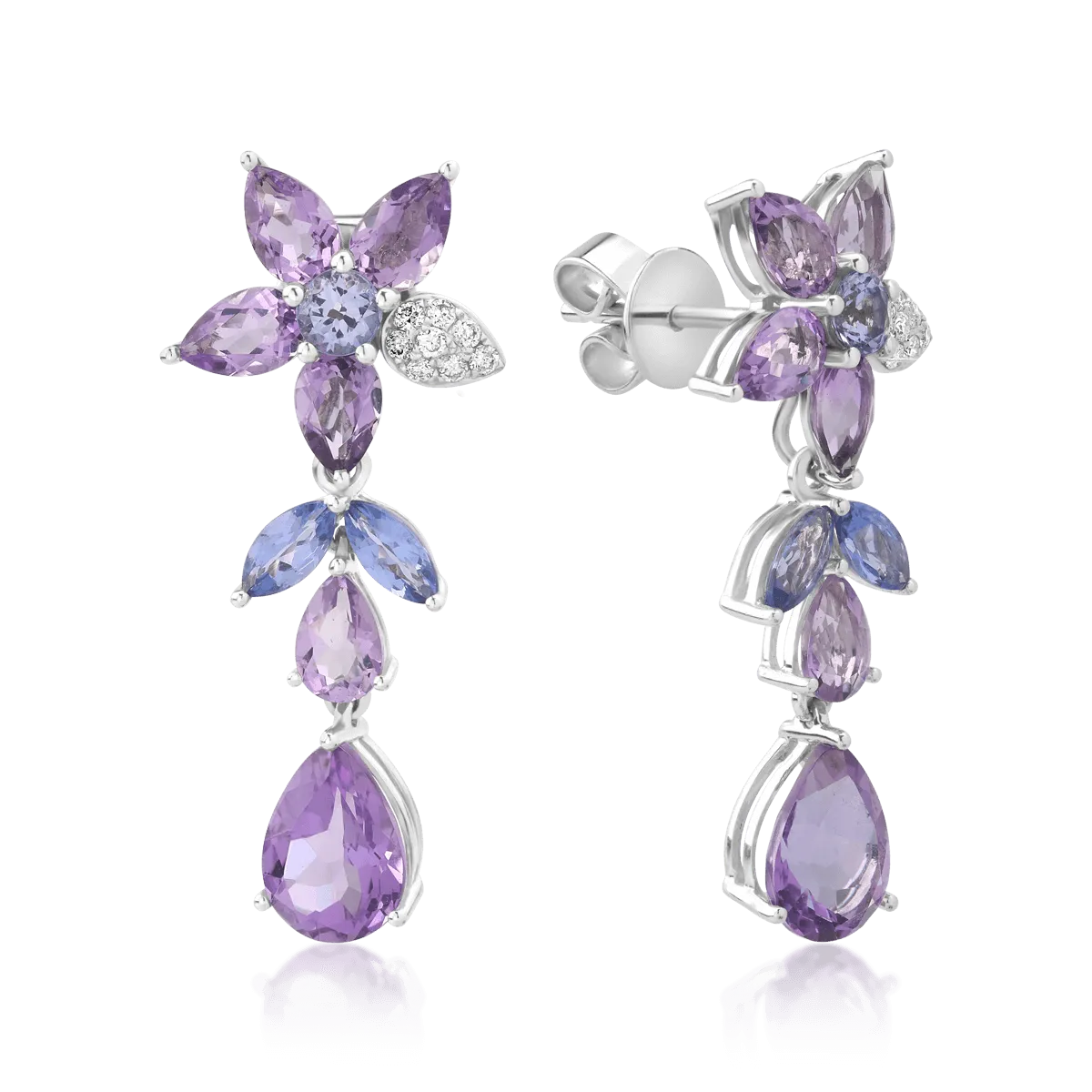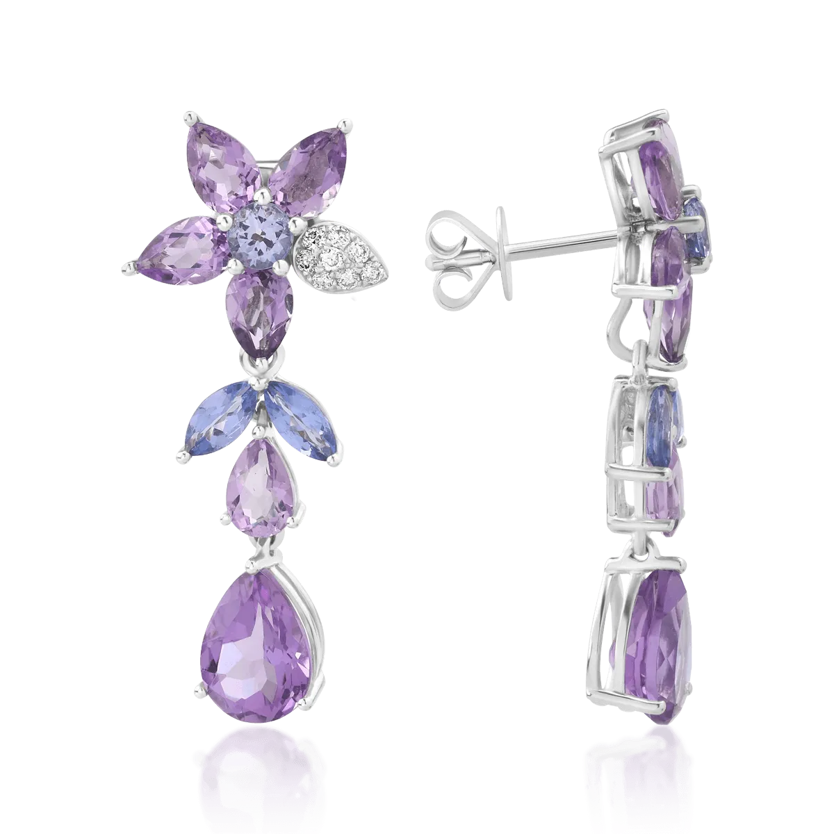 Cercei din aur alb cu pietre pretioase si semipretioase de 9.39ct