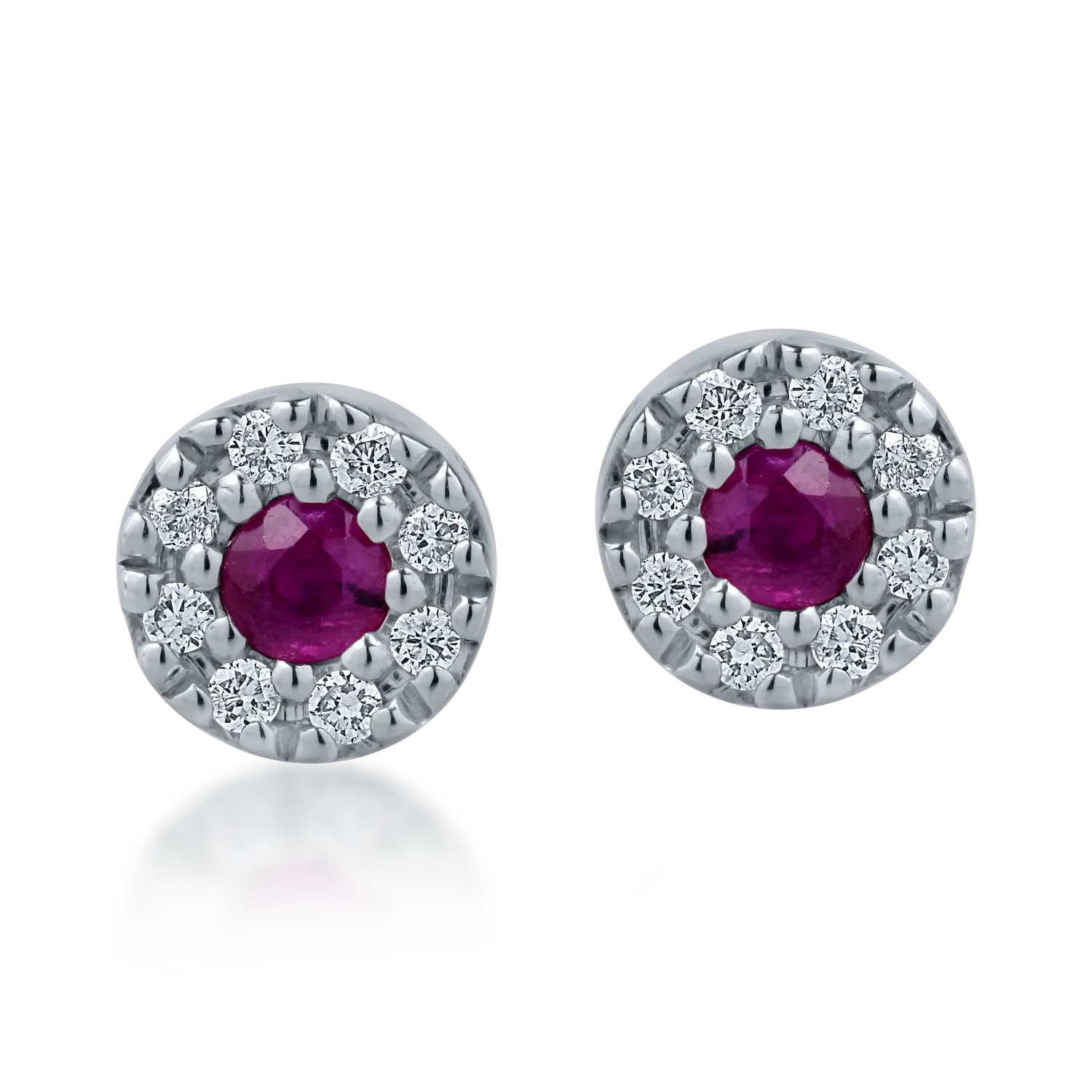 Cercei din aur alb cu rubine de 0.17ct si diamante de 0.08ct