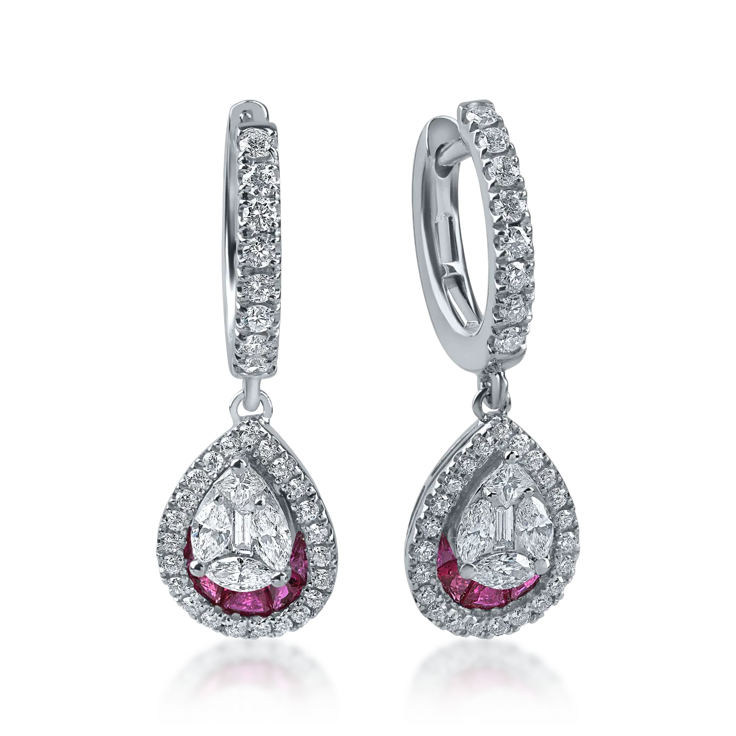 Cercei din aur alb cu rubine de 0.62ct si diamante de 0.28ct
