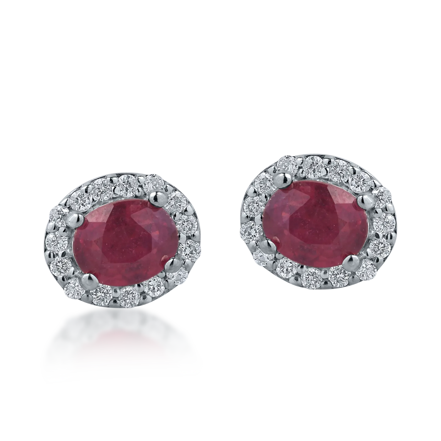 Cercei din aur alb cu rubine ovale de 0.93ct si diamante de 0.15ct