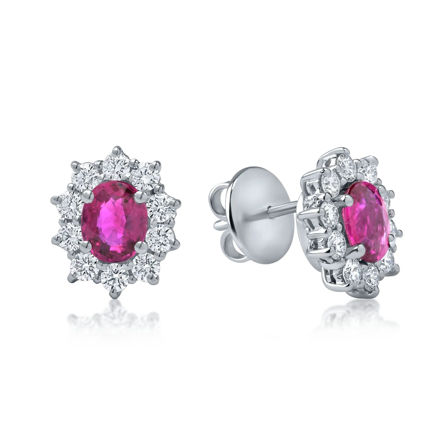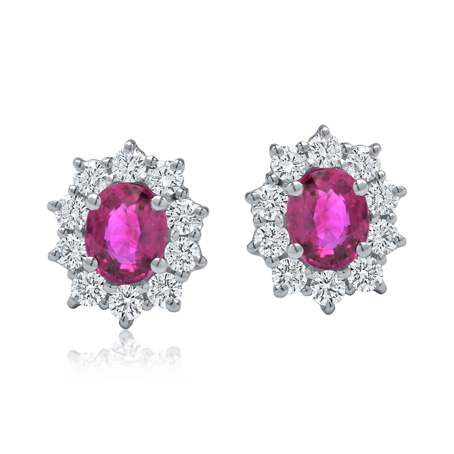 Cercei din aur alb cu rubine ovale de 1.37ct si diamante de 0.65ct