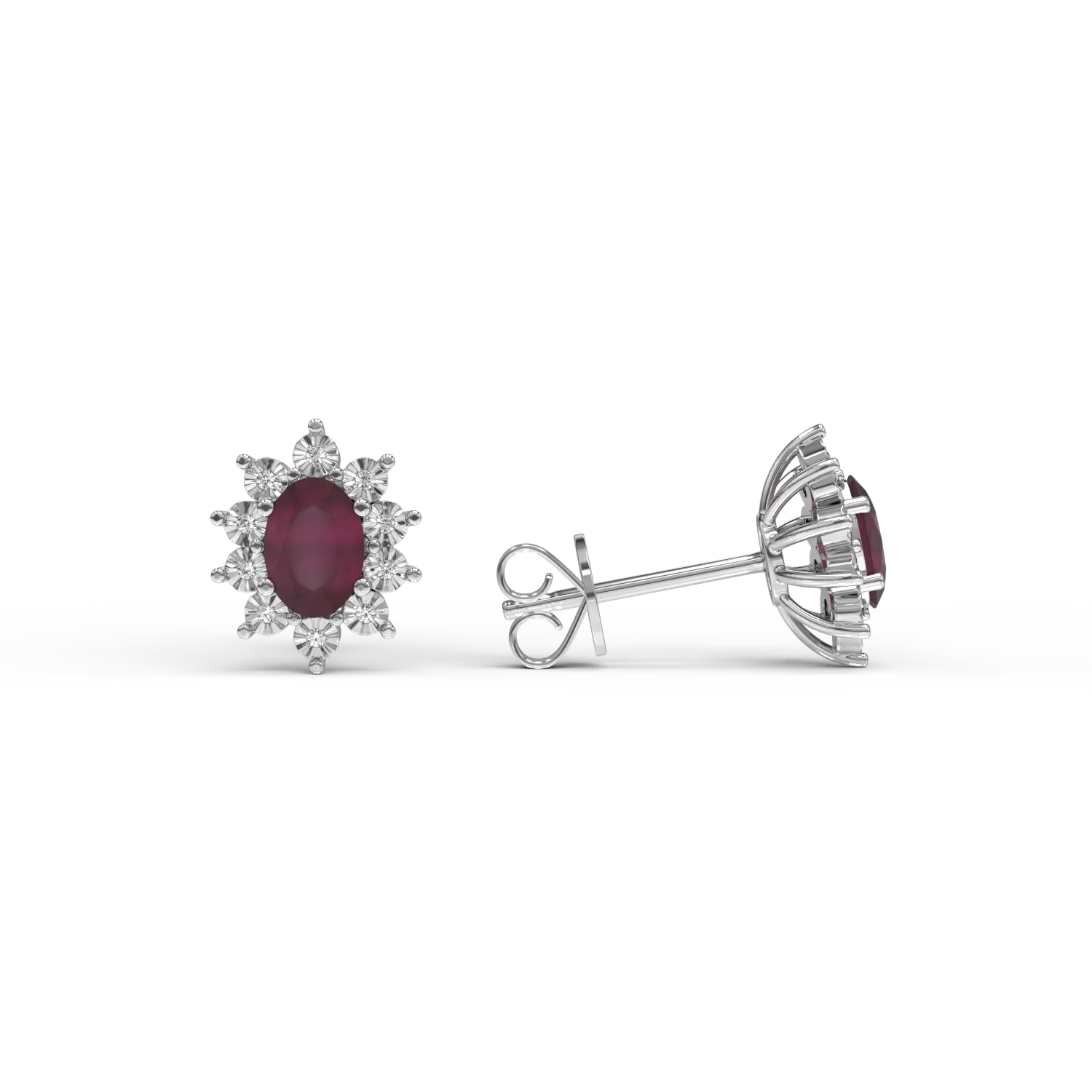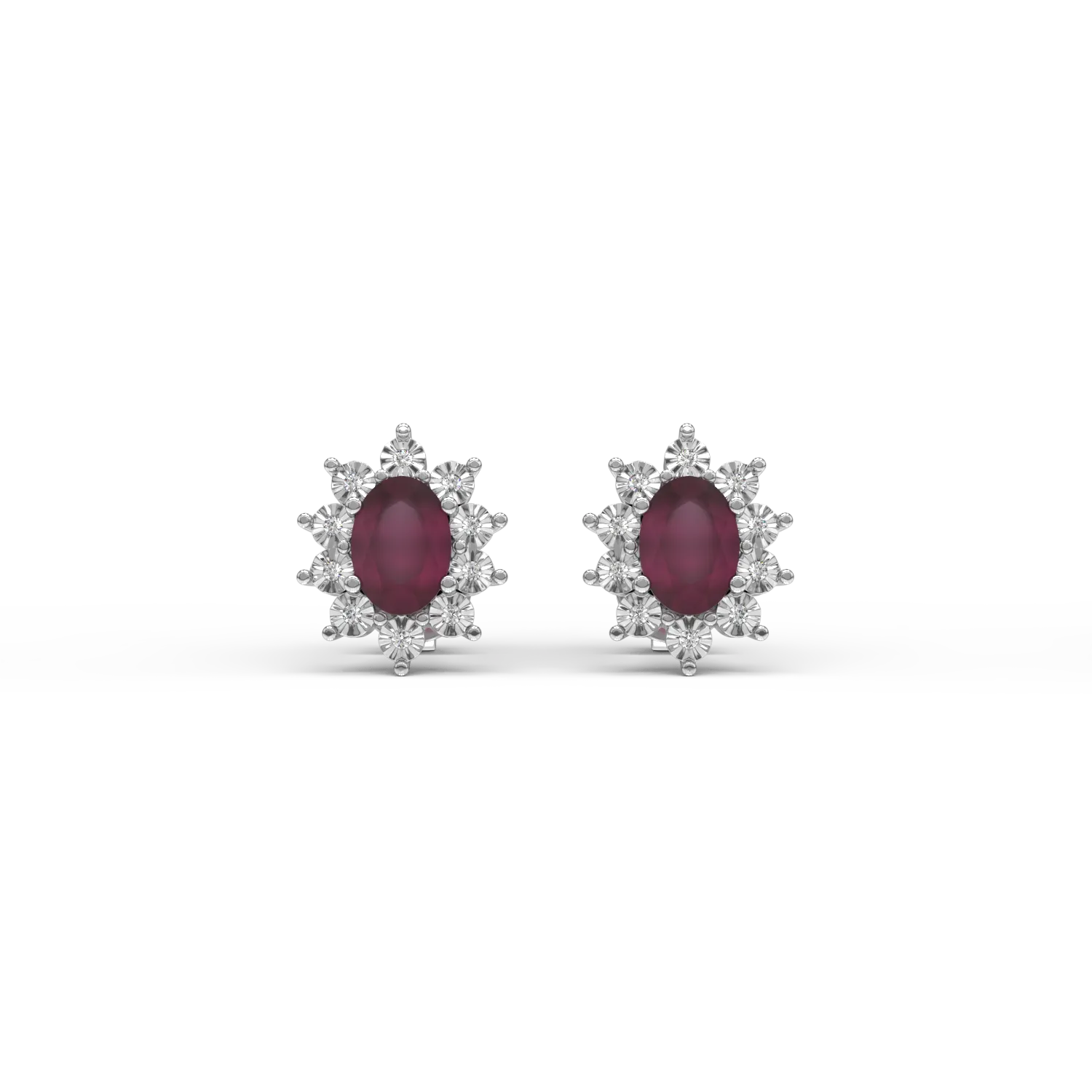 Cercei din aur alb cu rubine ovale de 1.96ct si diamante de 0.05ct