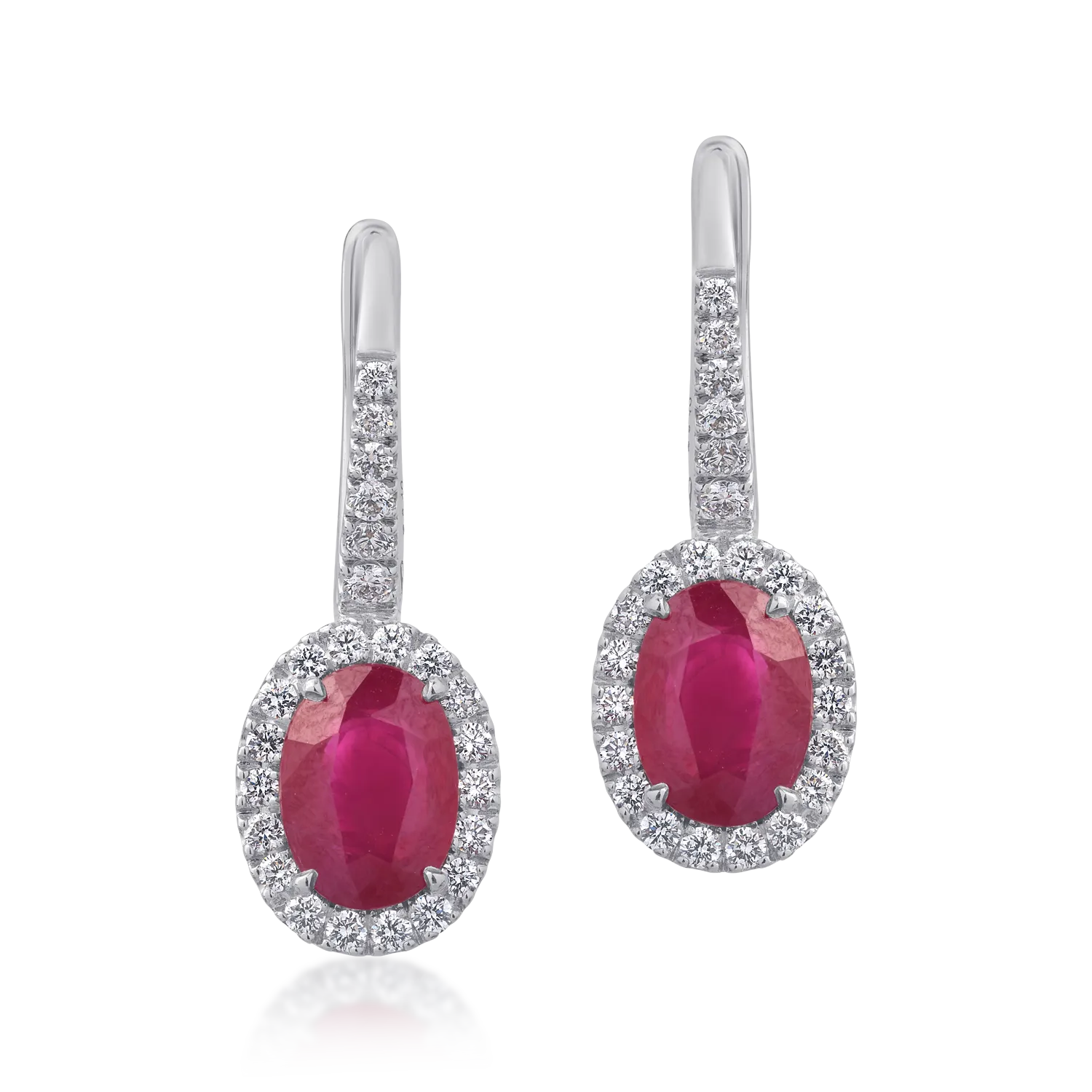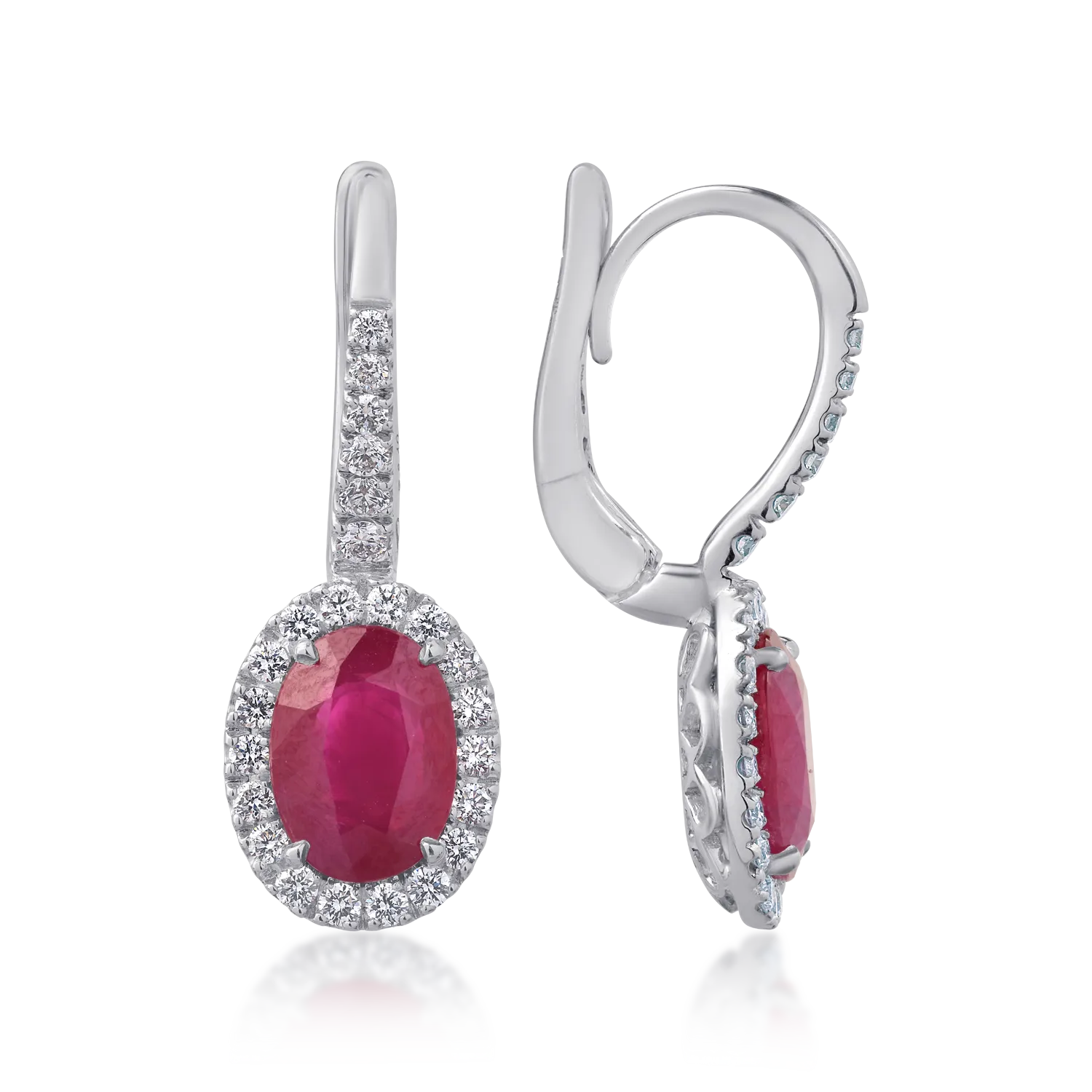 Cercei din aur alb cu rubine ovale de 3.12ct si diamante round de 0.46ct