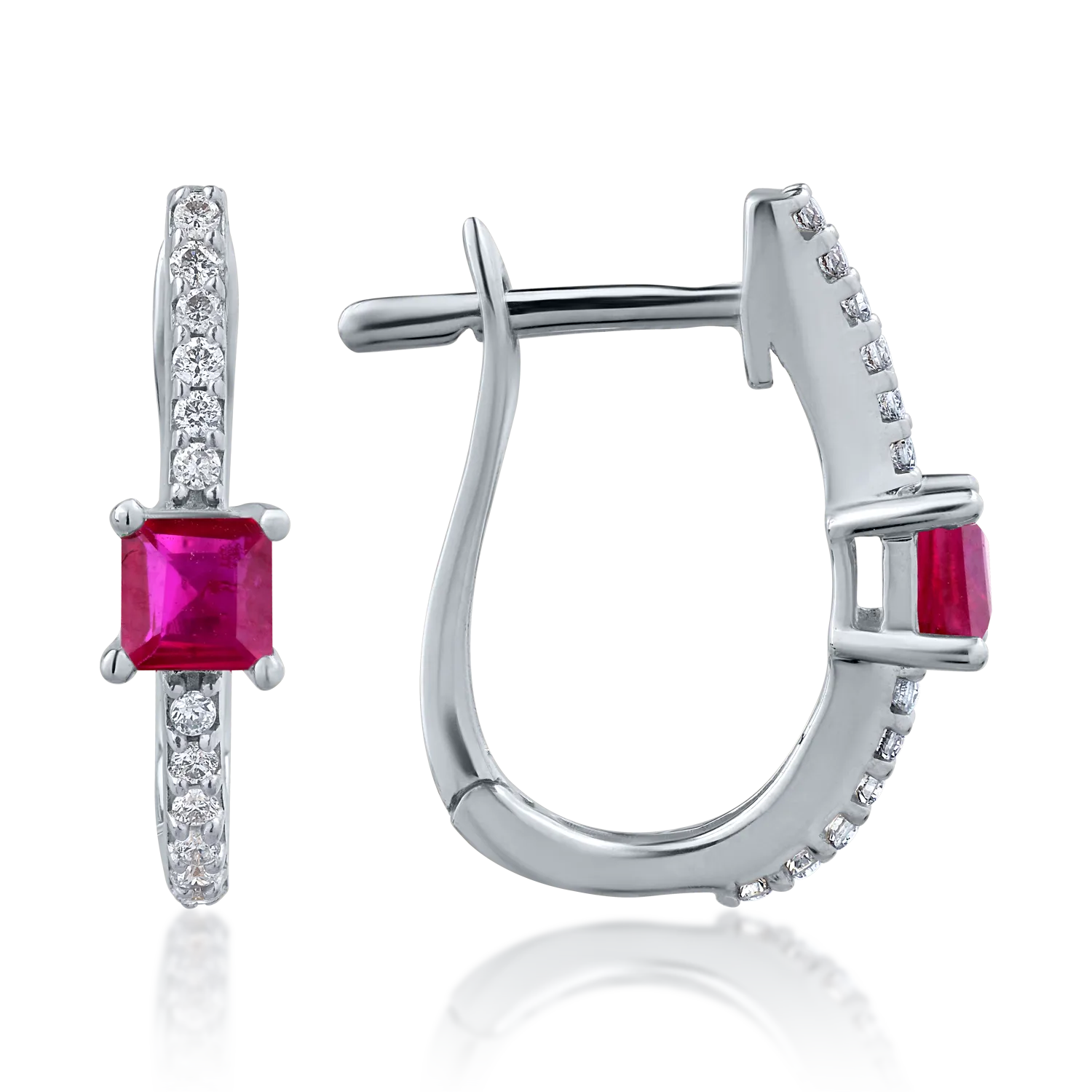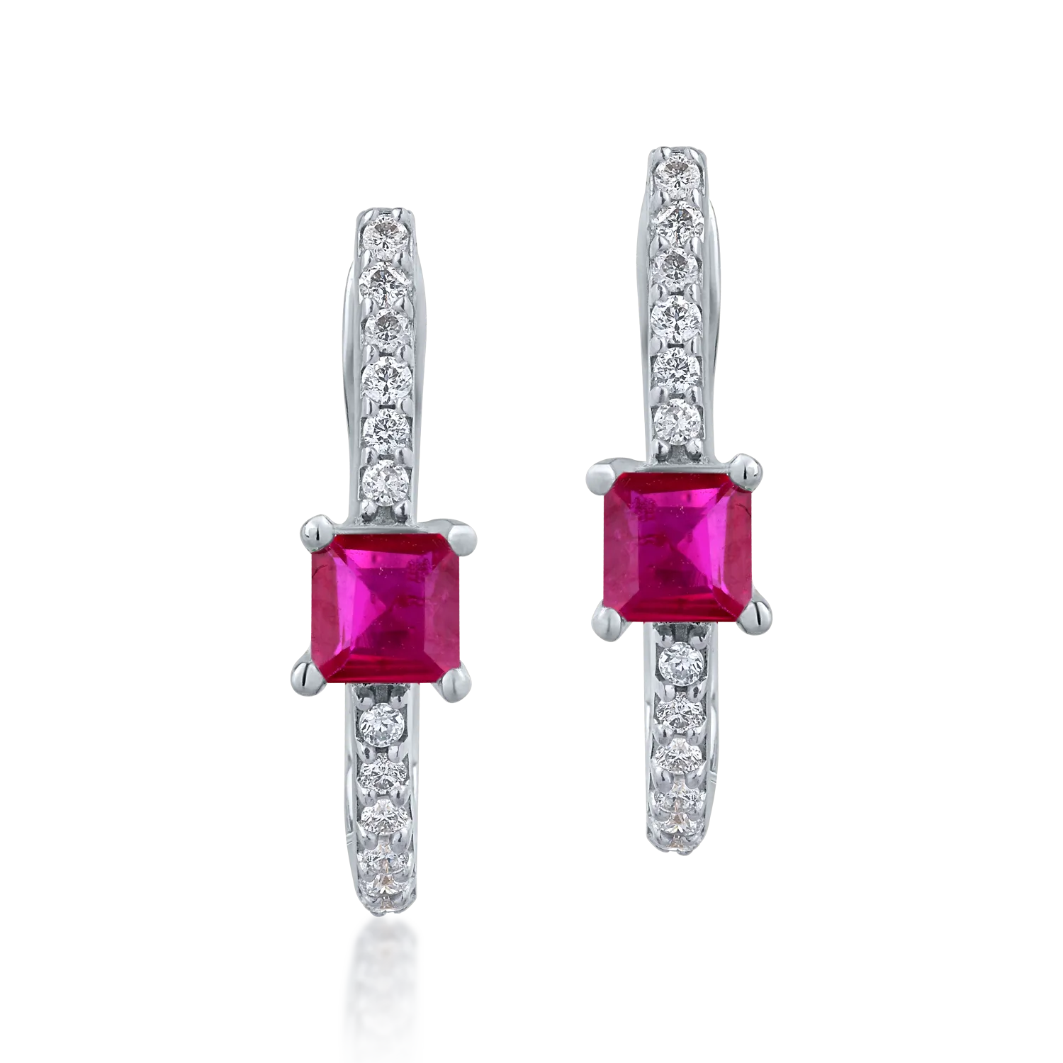 Cercei din aur alb cu rubine princess de 0.504ct si diamante de 0.129ct