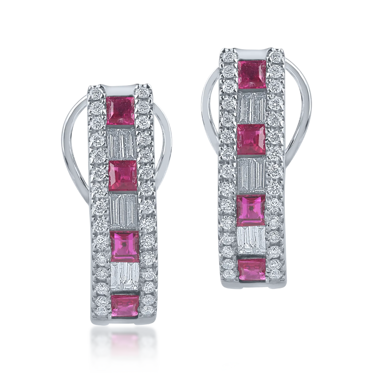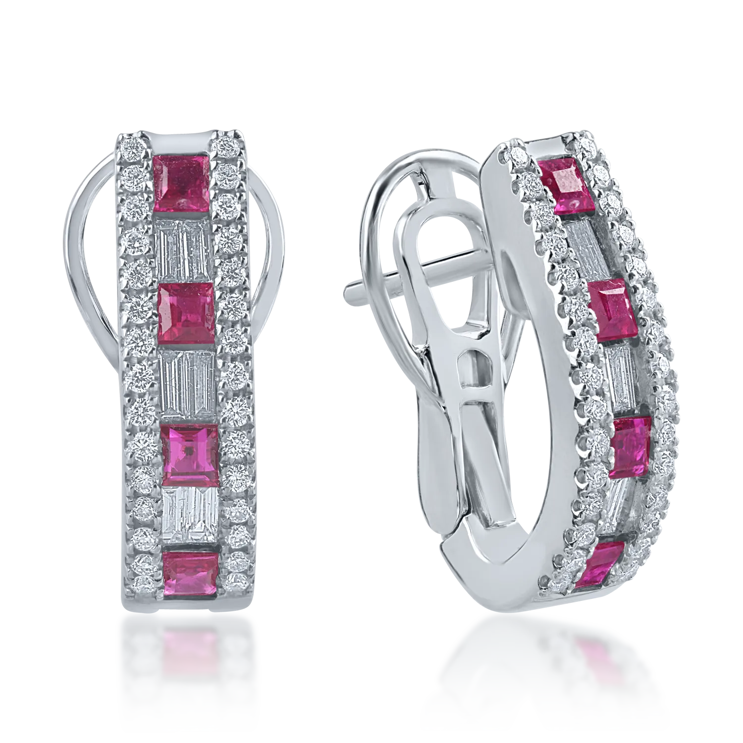Cercei din aur alb cu rubine princess de 0.52ct si diamante baguette si rotunde de 0.44ct