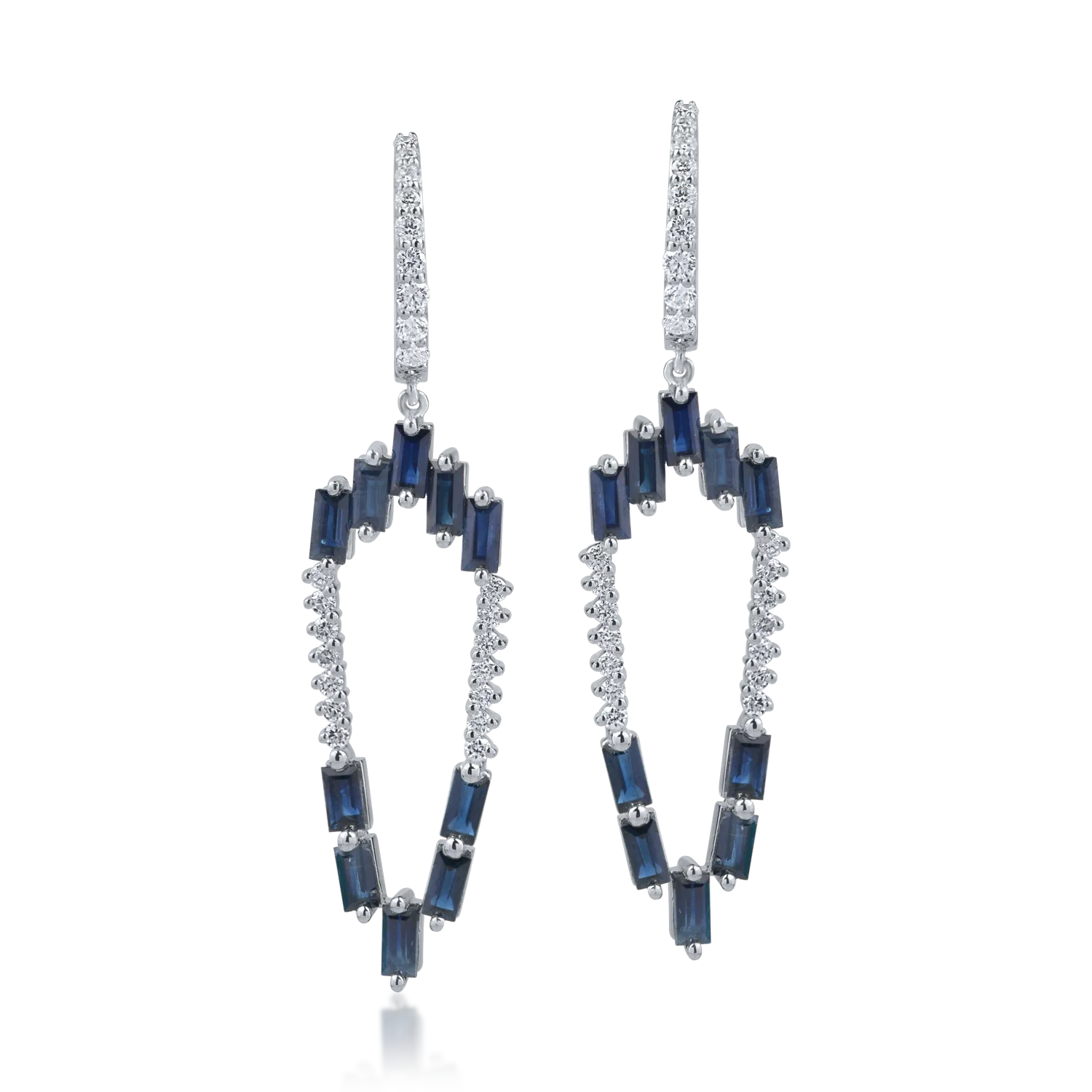 Cercei din aur alb cu safire de 3.4ct si diamante de 0.66ct