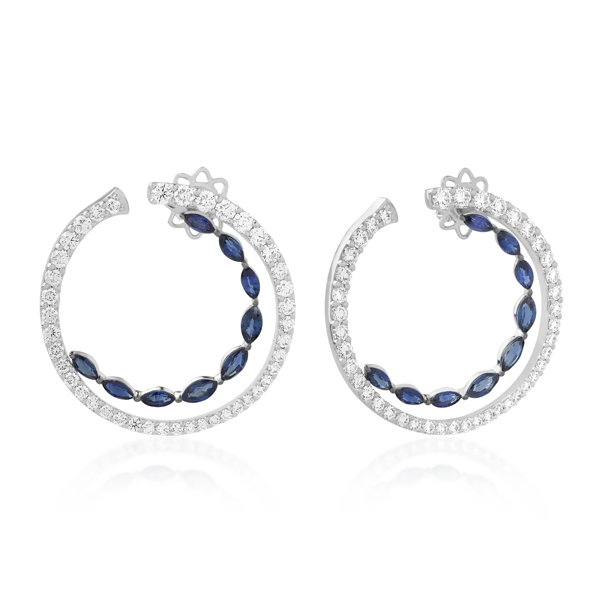 Cercei din aur alb cu safire marquise de 4.04ct si diamante round de 4.66ct