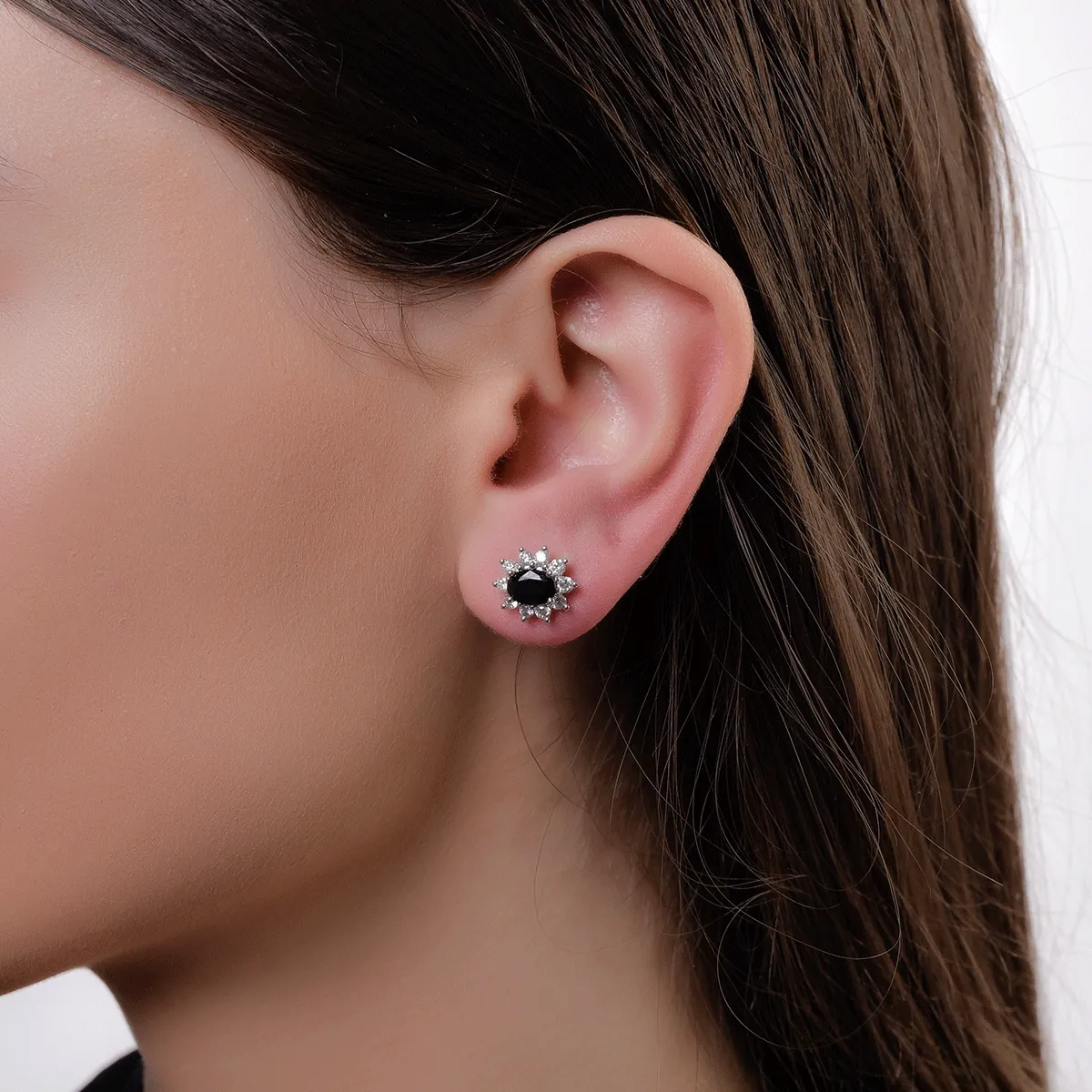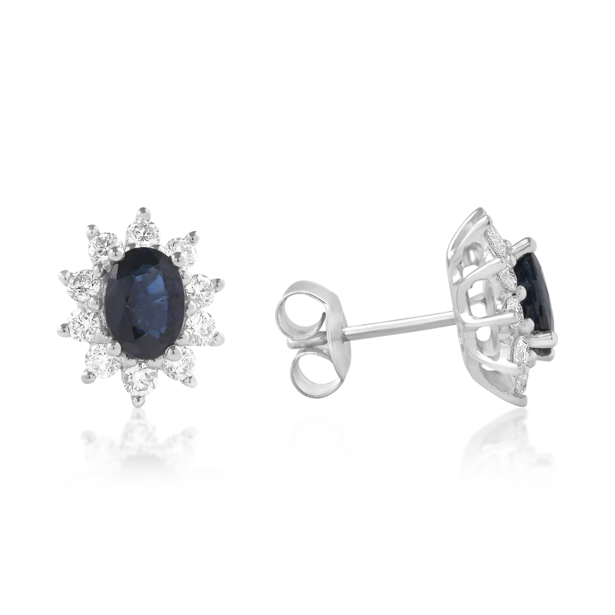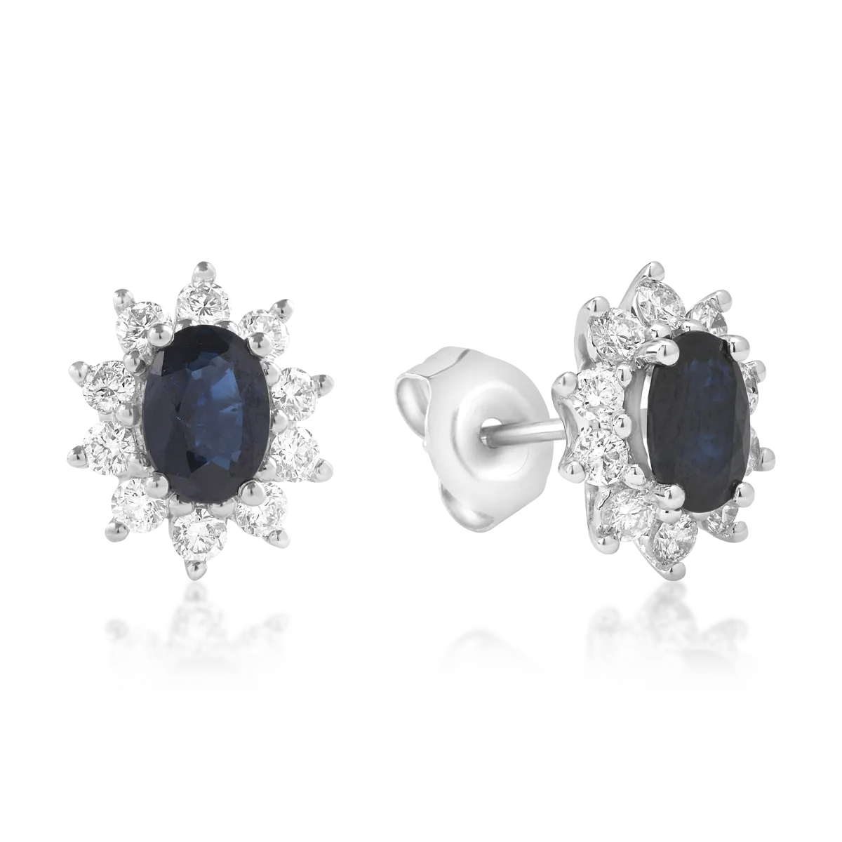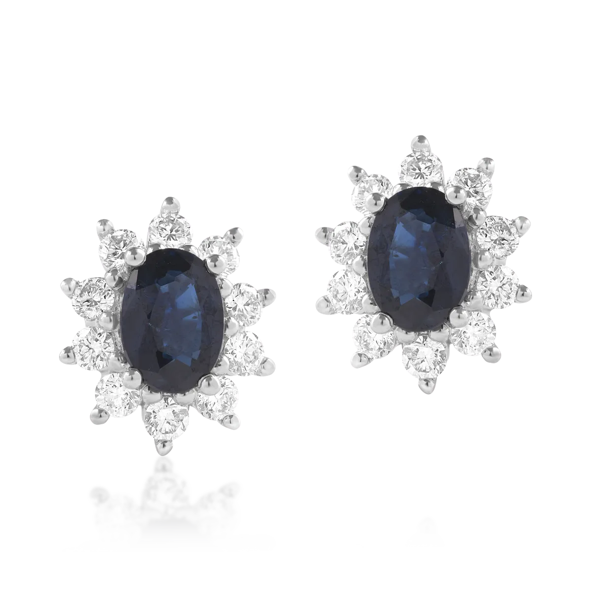 Cercei din aur alb cu safire ovale de 2ct si diamante de 0.84ct