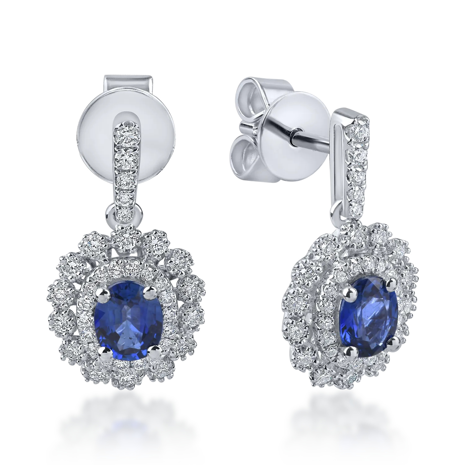 Cercei din aur alb cu safire ovale si diamante de 1.3ct