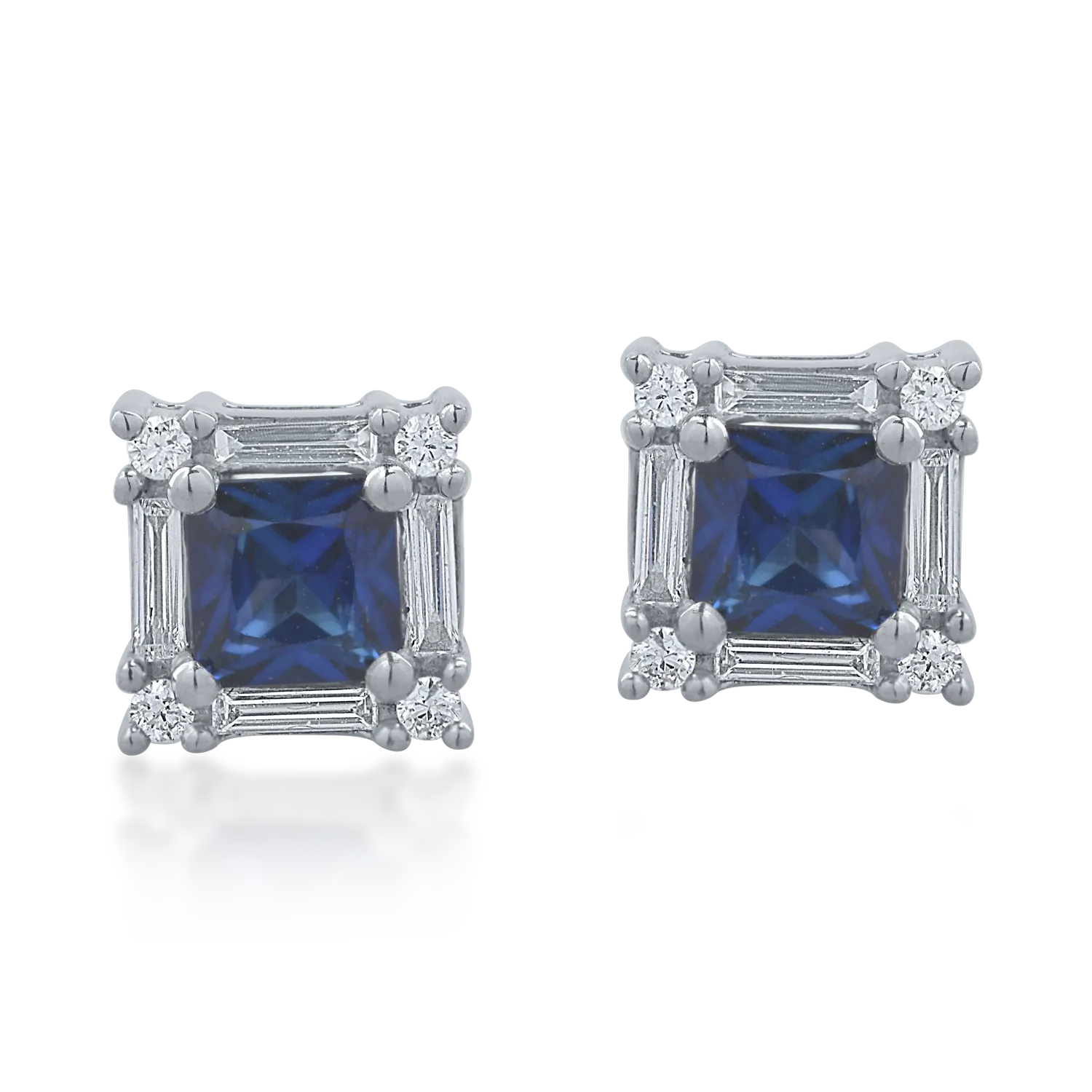 Cercei din aur alb cu safire princess de 0.6ct si diamante de 0.19ct