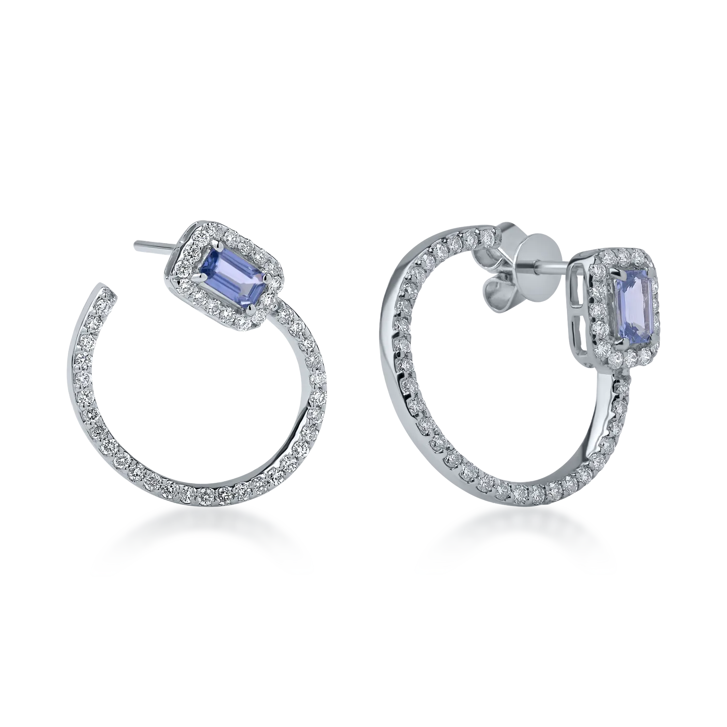 Cercei din aur alb cu safire rectangulare de 0.62ct si diamante de 0.79ct