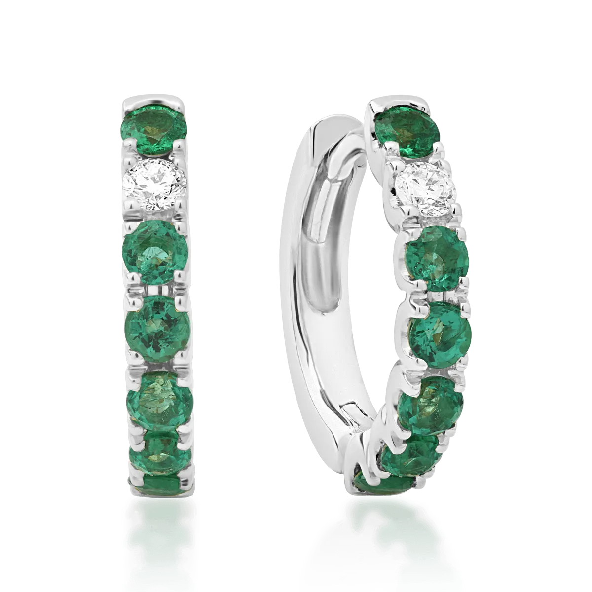 Cercei din aur alb cu smaralde de 0.68ct si diamante de 0.1ct
