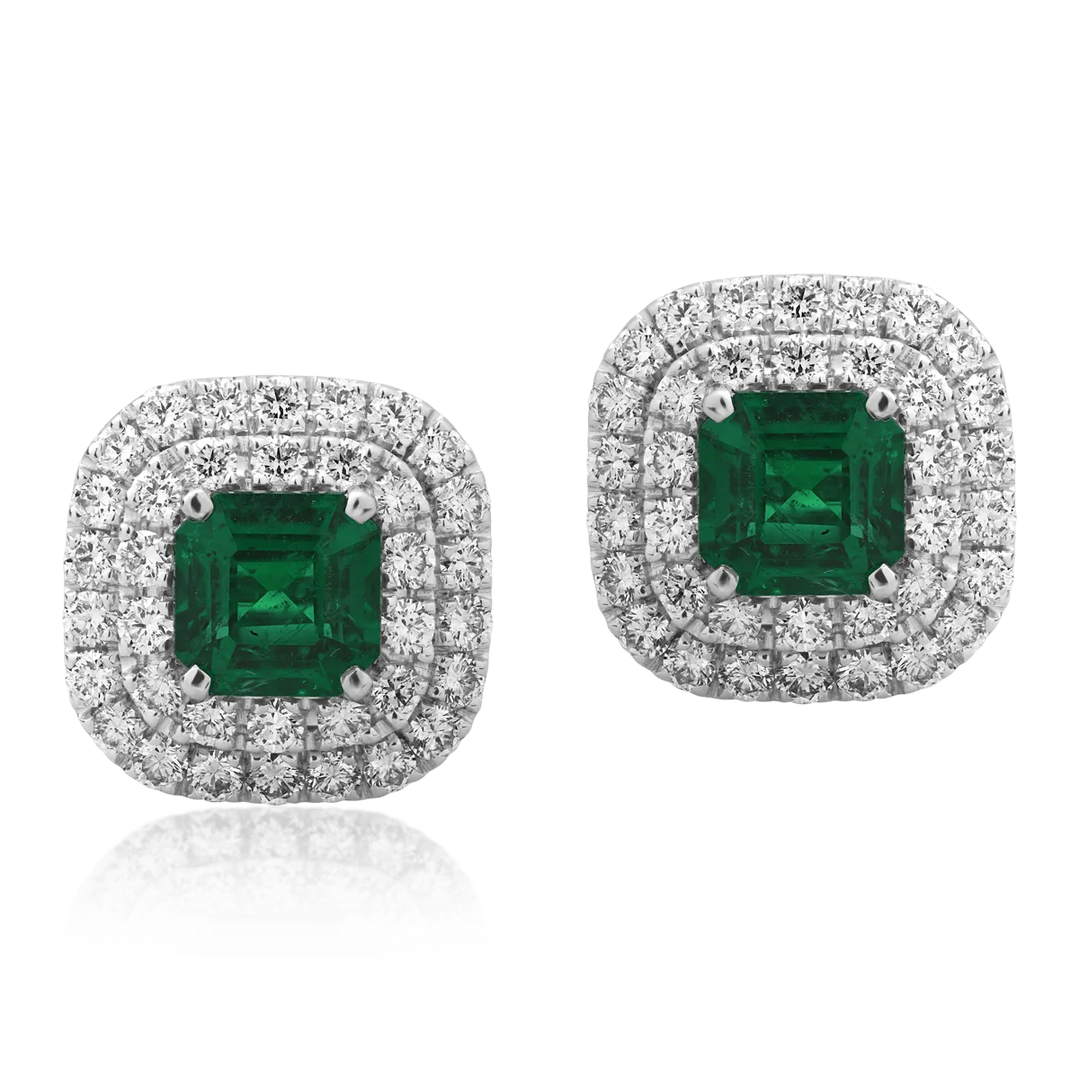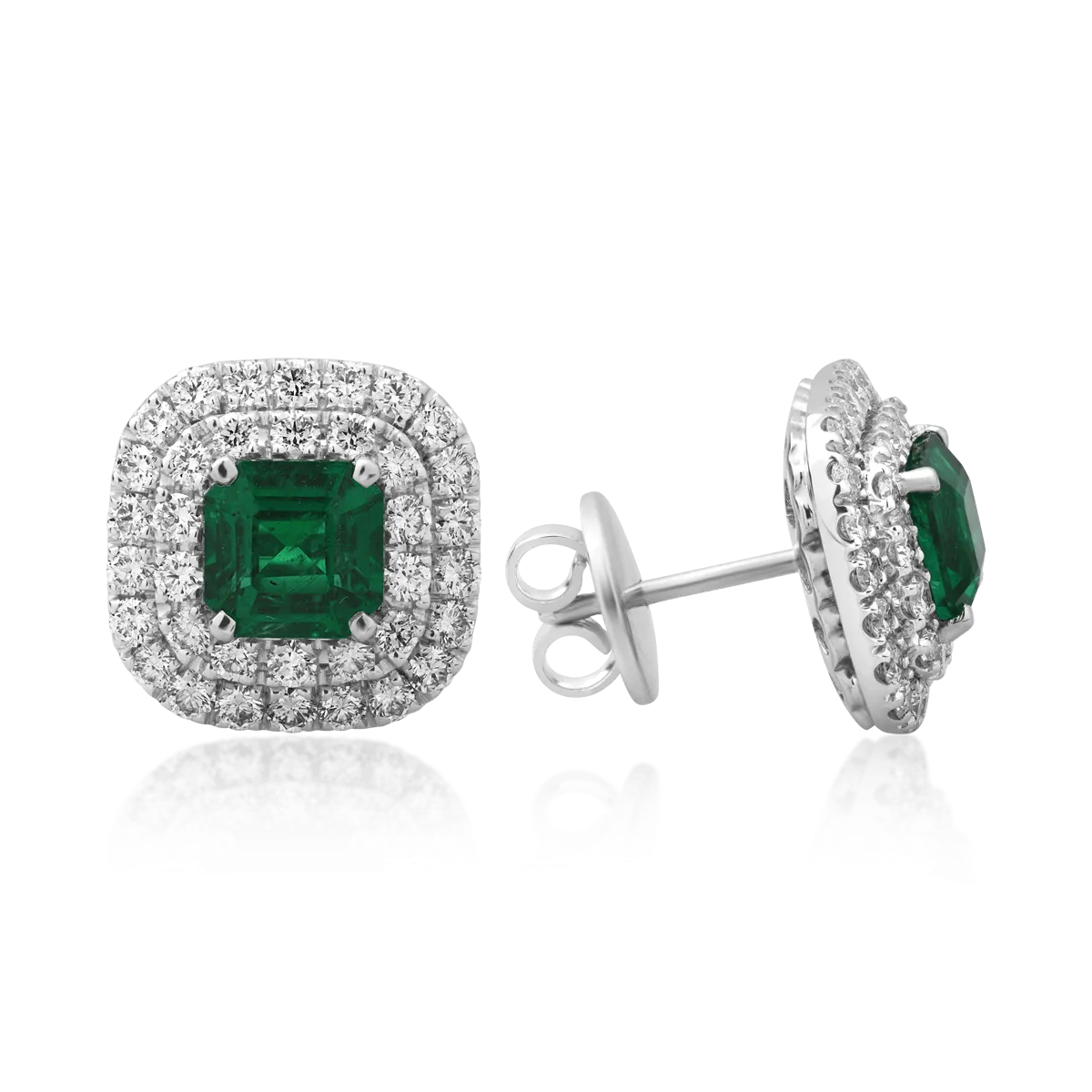 Cercei din aur alb cu smaralde emerald de 2.08ct si diamante round de 1.36ct