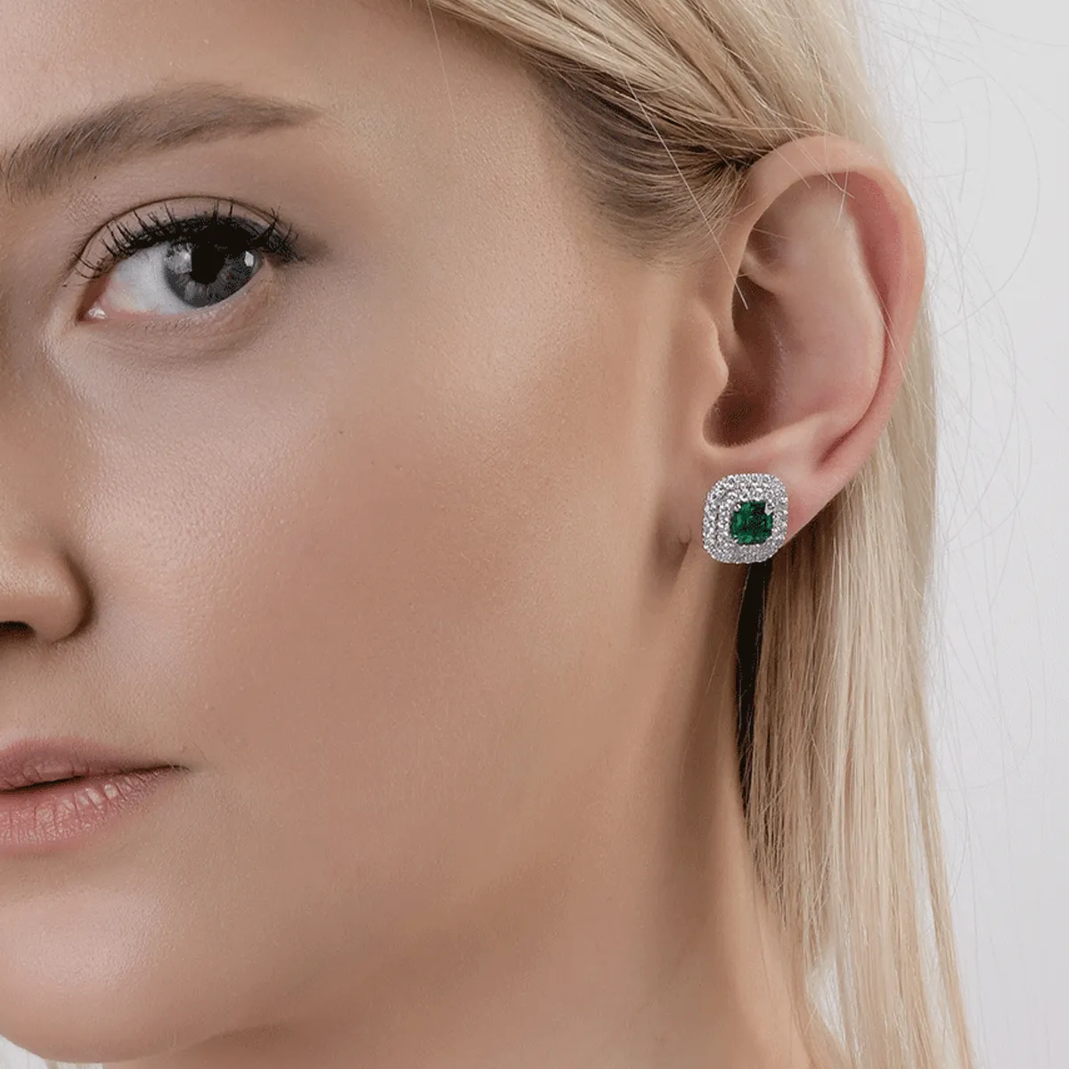 Echilibrul dintre lumina si culoare se defineste in cerceii din aur alb cu smaralde emerald de 2.08ct si diamante round de 1.36ct. Taietura emerald a smaraldelor dezvaluie intensitatea verdei profunde intr-un mod elegant si ordonat, in timp ce diamantele rotunde adauga o nota vibranta de stralucire. Aurul alb subliniaza puritatea ansamblului, oferind o estetica moderna si sofisticata. Aceasta bijuterie TEILOR este un tribut adus feminitatii rafinate, o combinatie armonioasa intre forta culorii si delicatetea formelor.