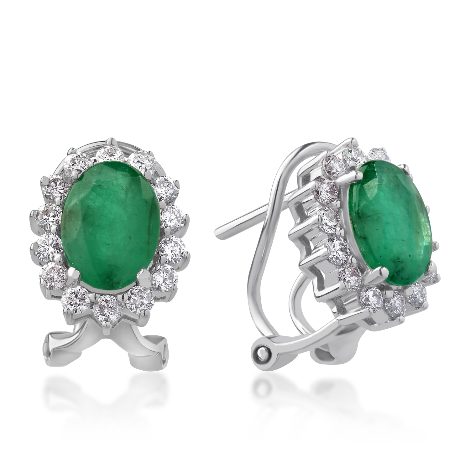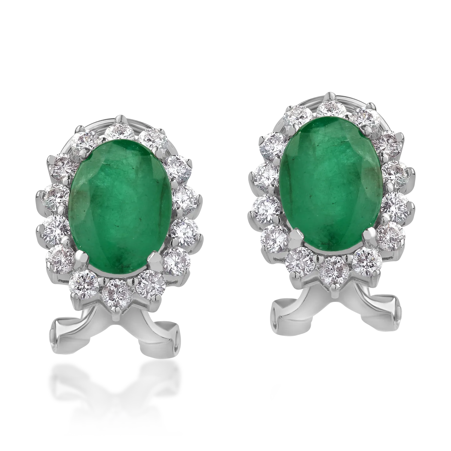 Cercei din aur alb cu smaralde ovale de 2.17ct si diamante round de 0.61ct