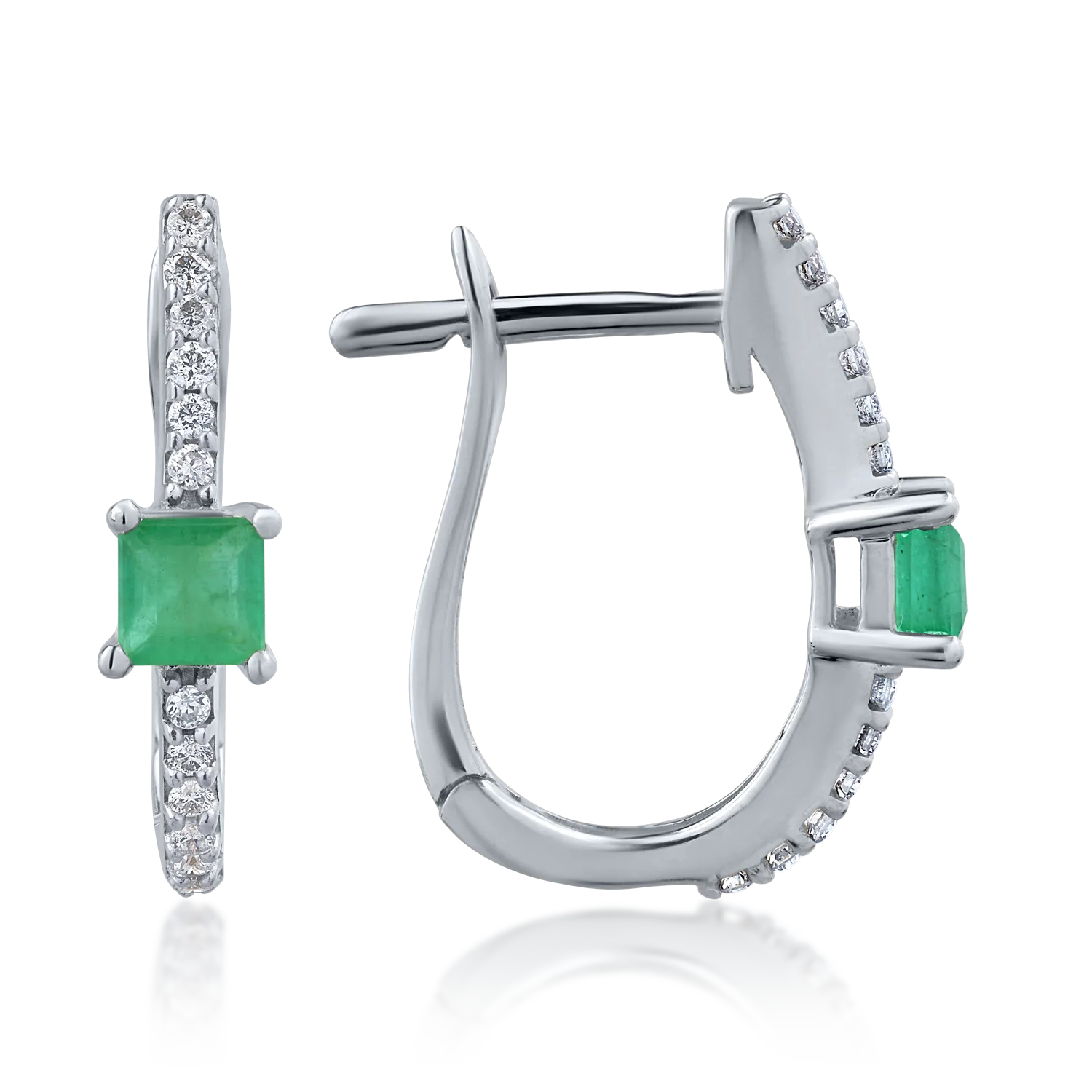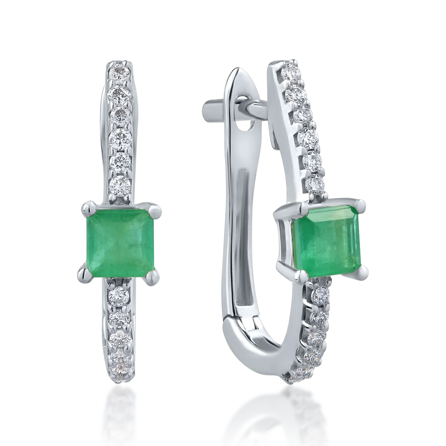 Cercei din aur alb cu smaralde princess de 0.347ct si diamante de 0.129ct
