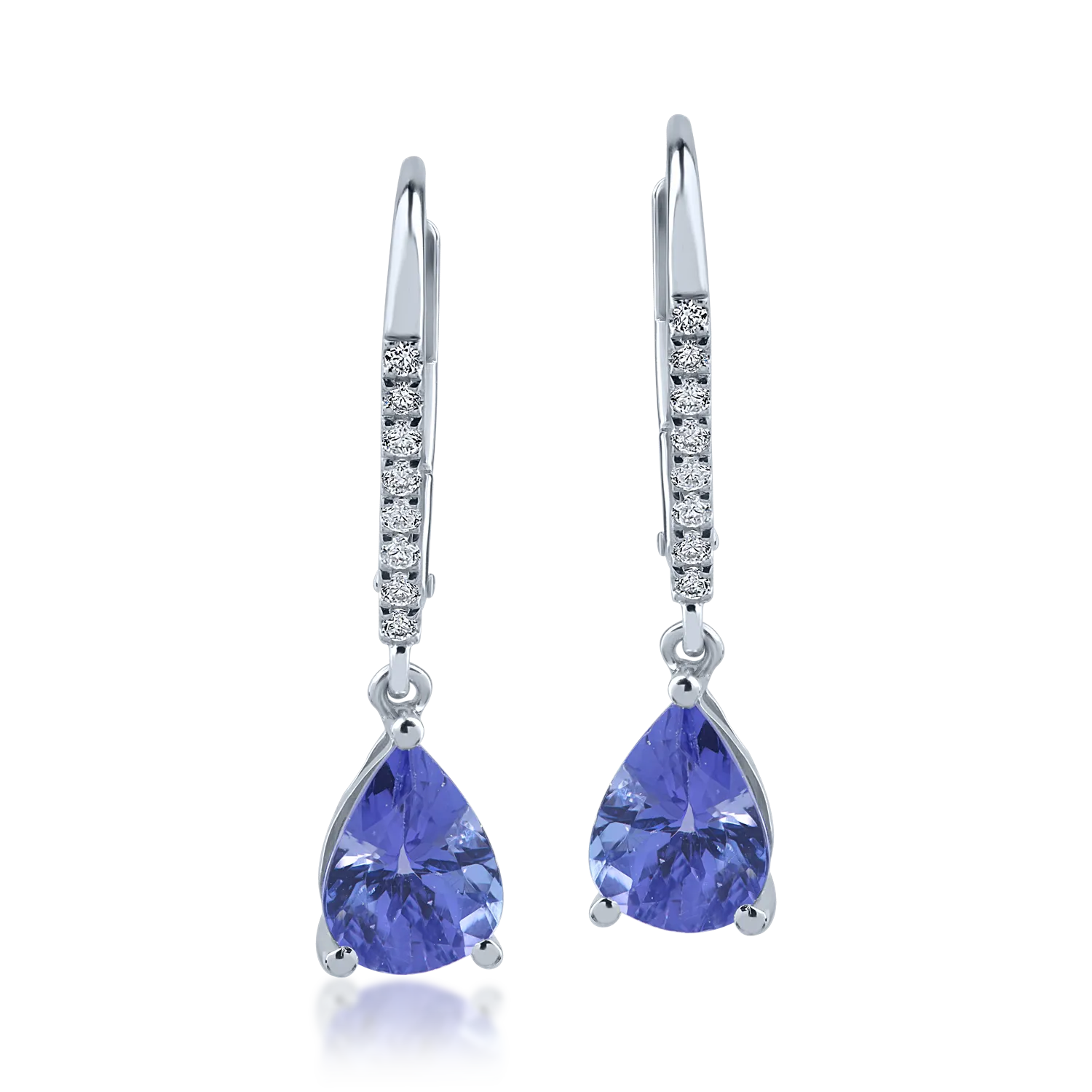 Cercei din aur alb cu tanzanite pear de 2.13ct si diamante de 0.12ct