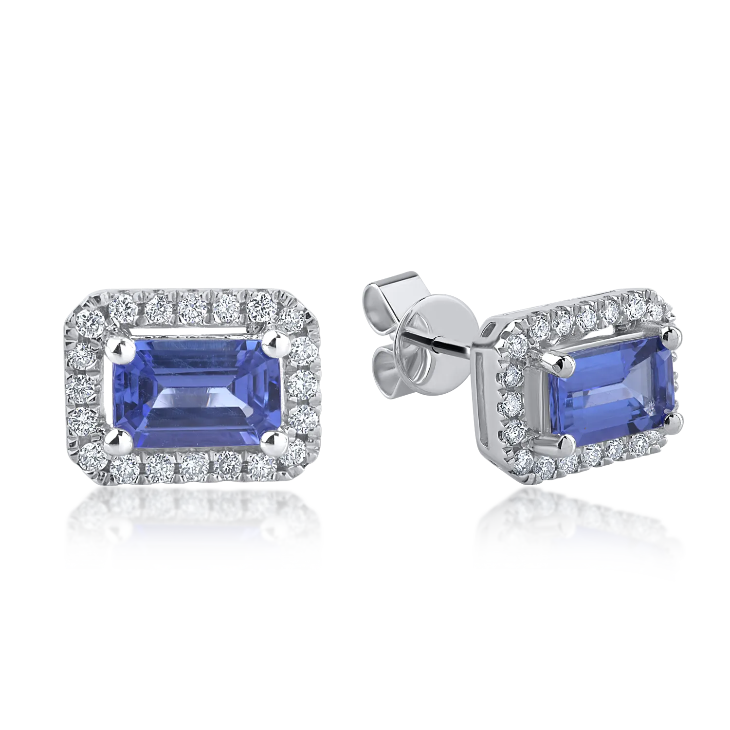Cercei din aur alb cu tanzanite rectangulare de 1.26ct si diamante de 0.2ct