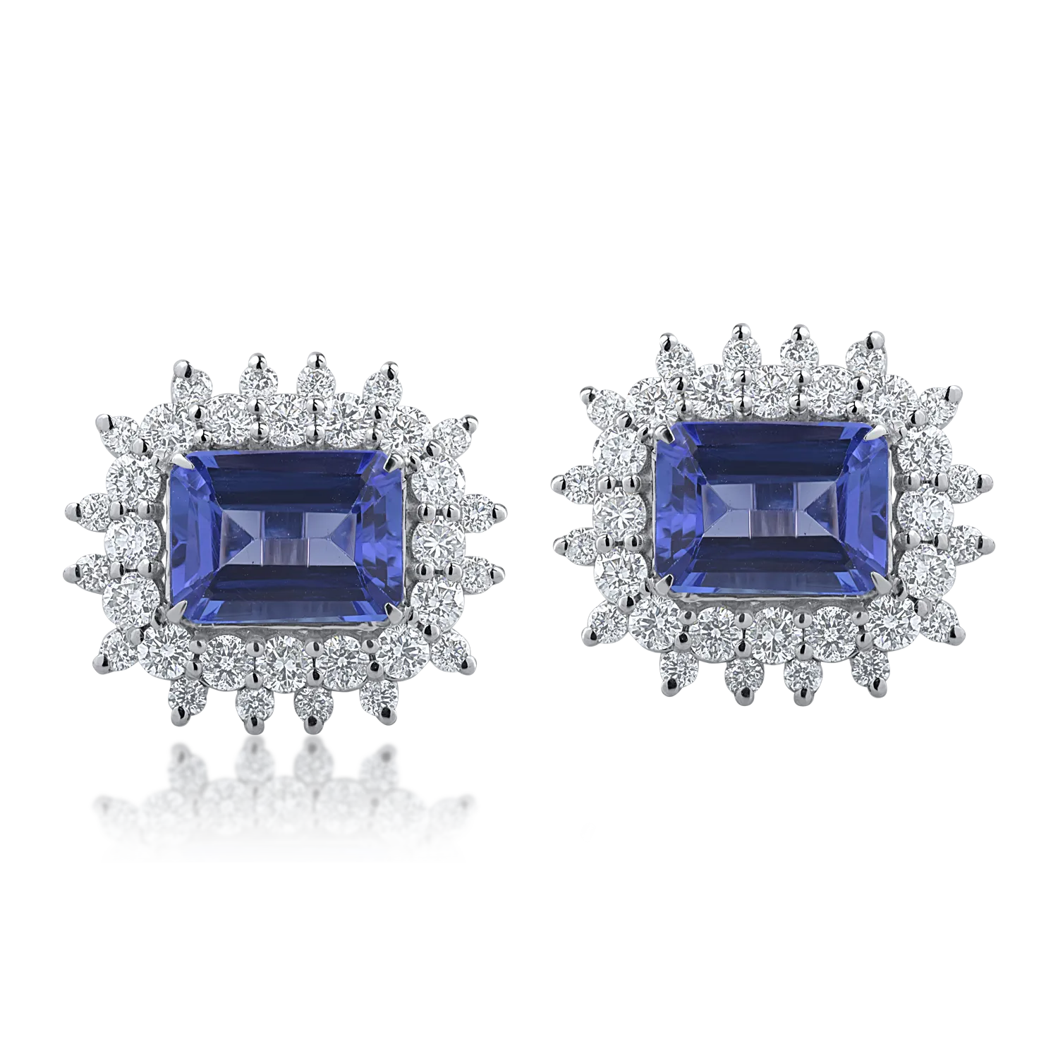 Cercei din aur alb cu tanzanite rectangulare de 3.31ct si diamante de 1.26ct