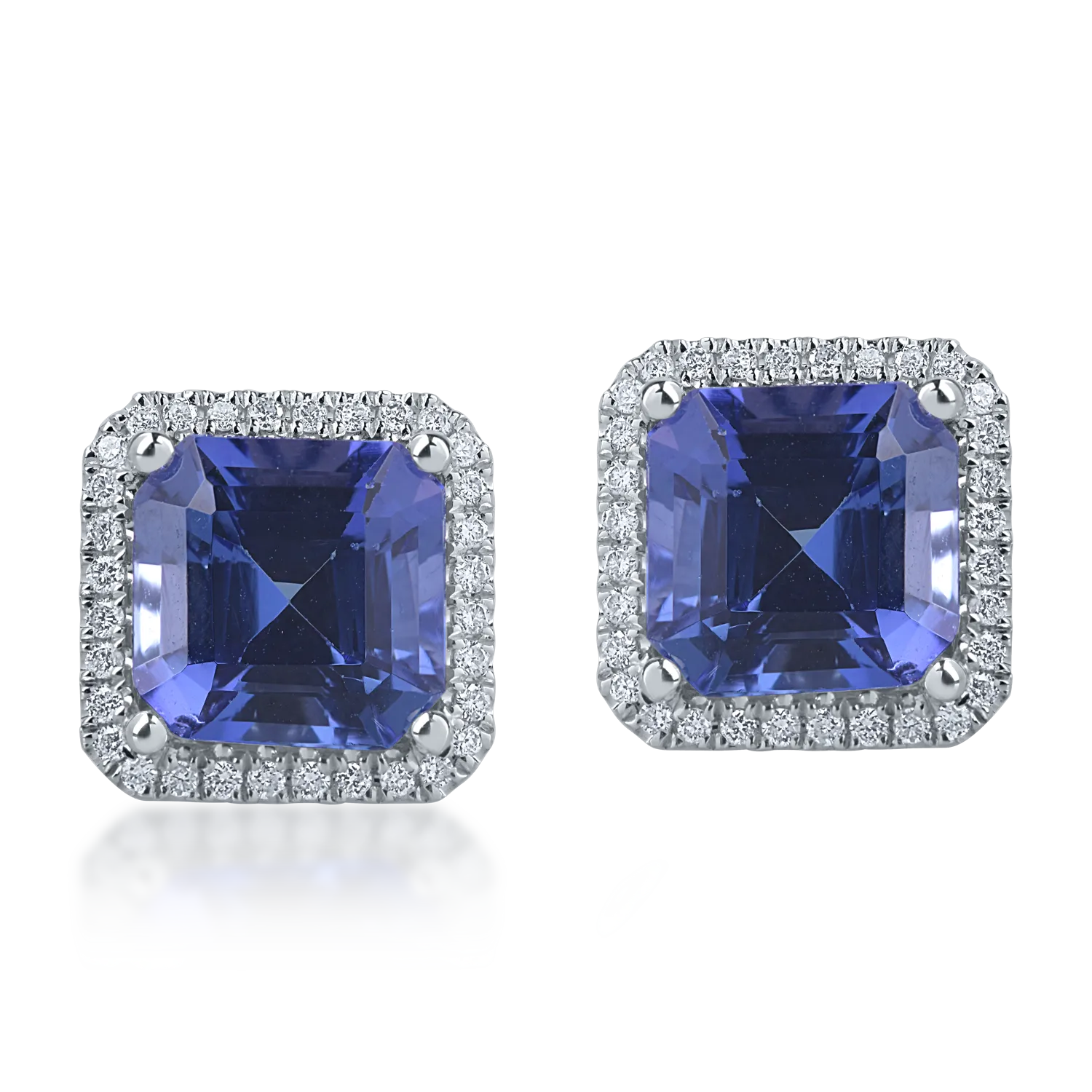 Cercei din aur alb cu tanzanite square de 7.14ct si diamante round de 0.52ct