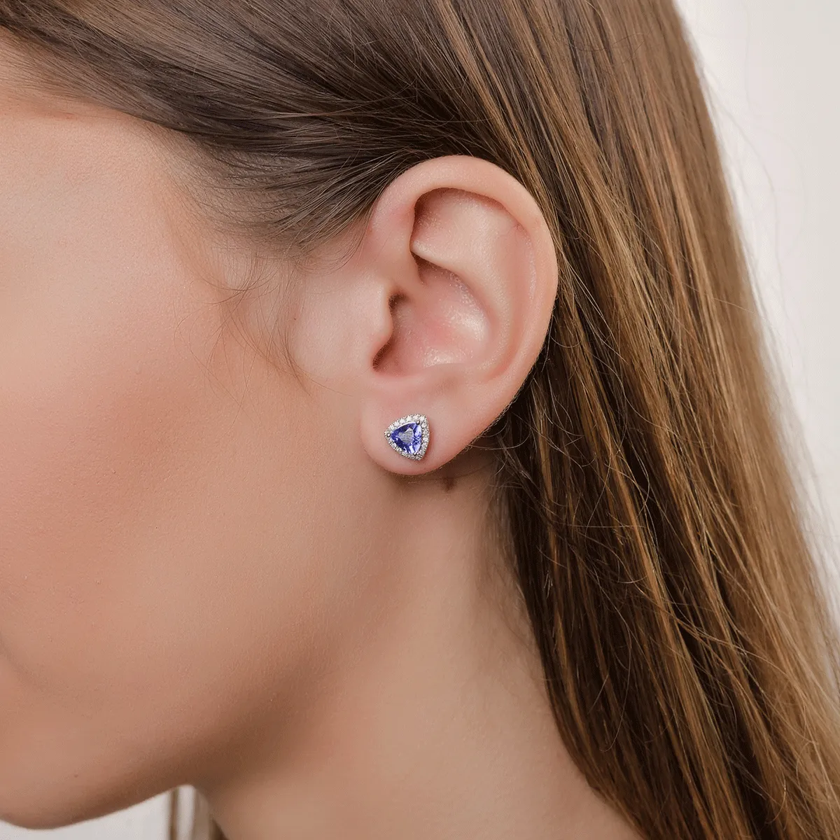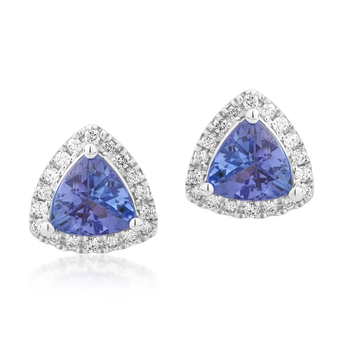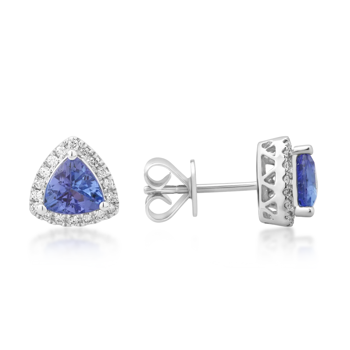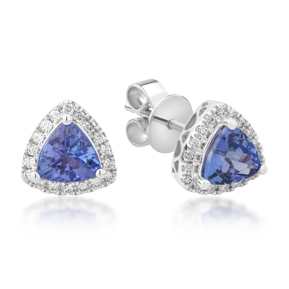 Cercei din aur alb cu tanzanite trillion de 1.53ct si diamante de 0.18ct