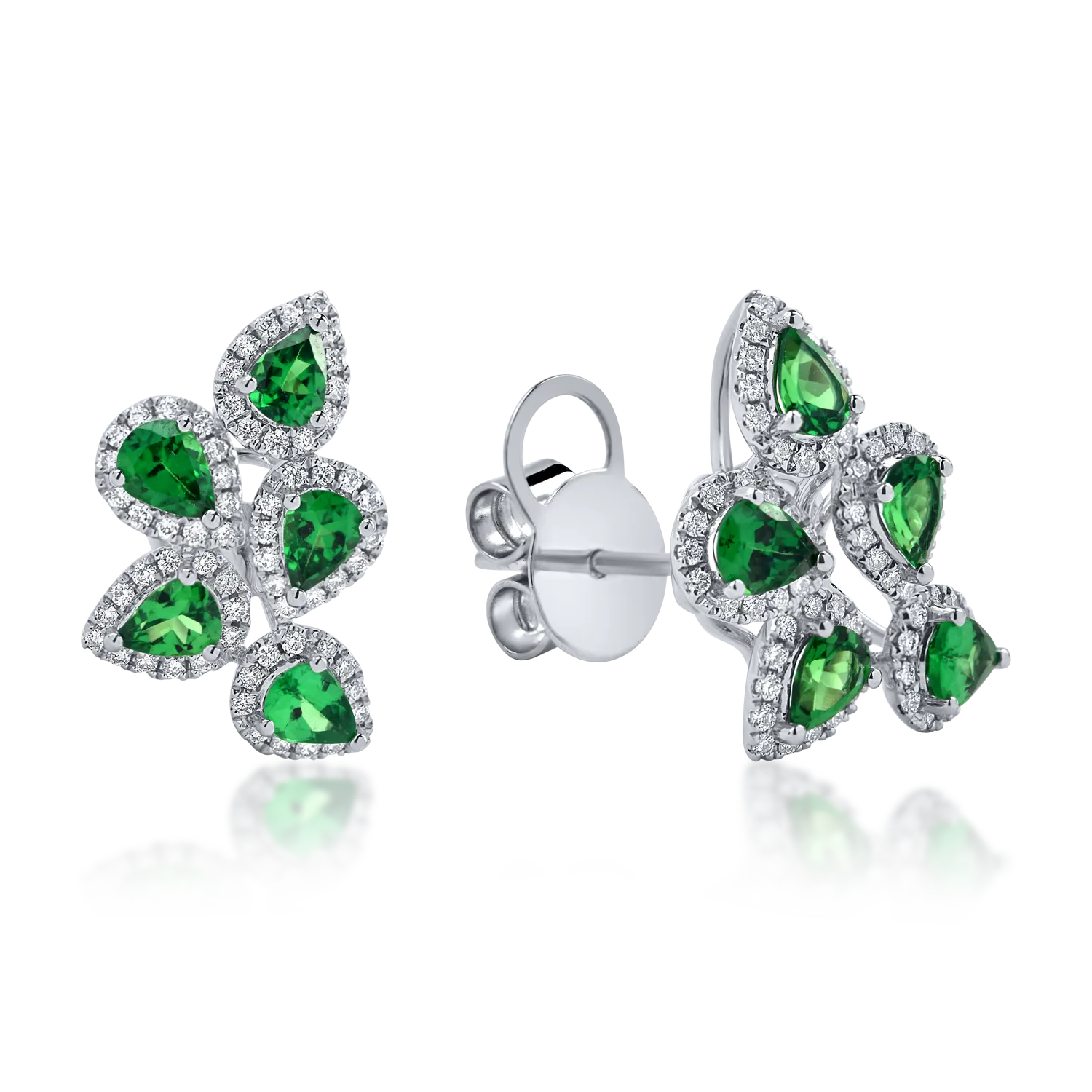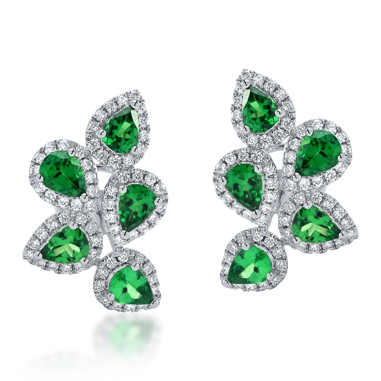 Cercei din aur alb cu tsavorite verzi pear de 1.4ct si diamante de 0.4ct