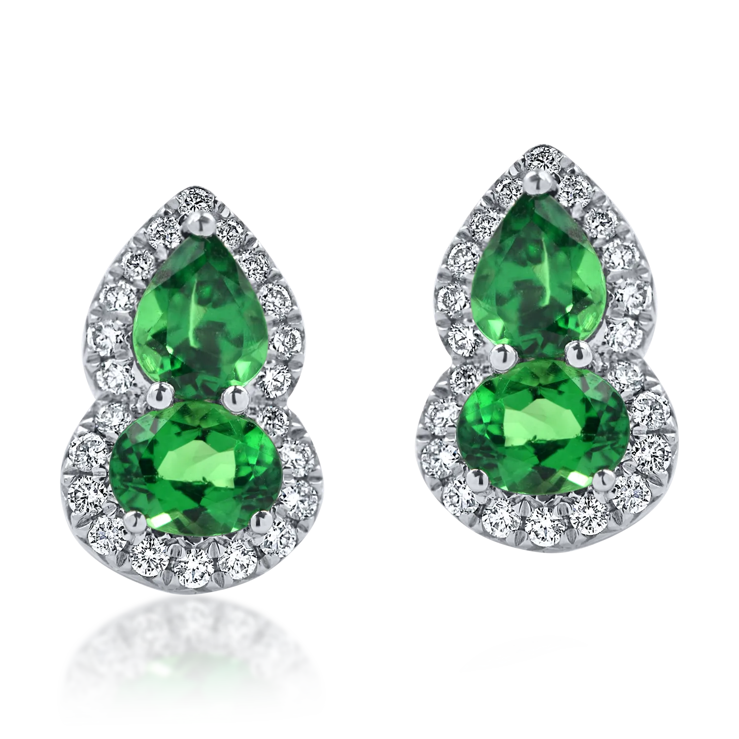 Cercei din aur alb cu tzavorite verzi ovale si pear si diamante de 1.8ct