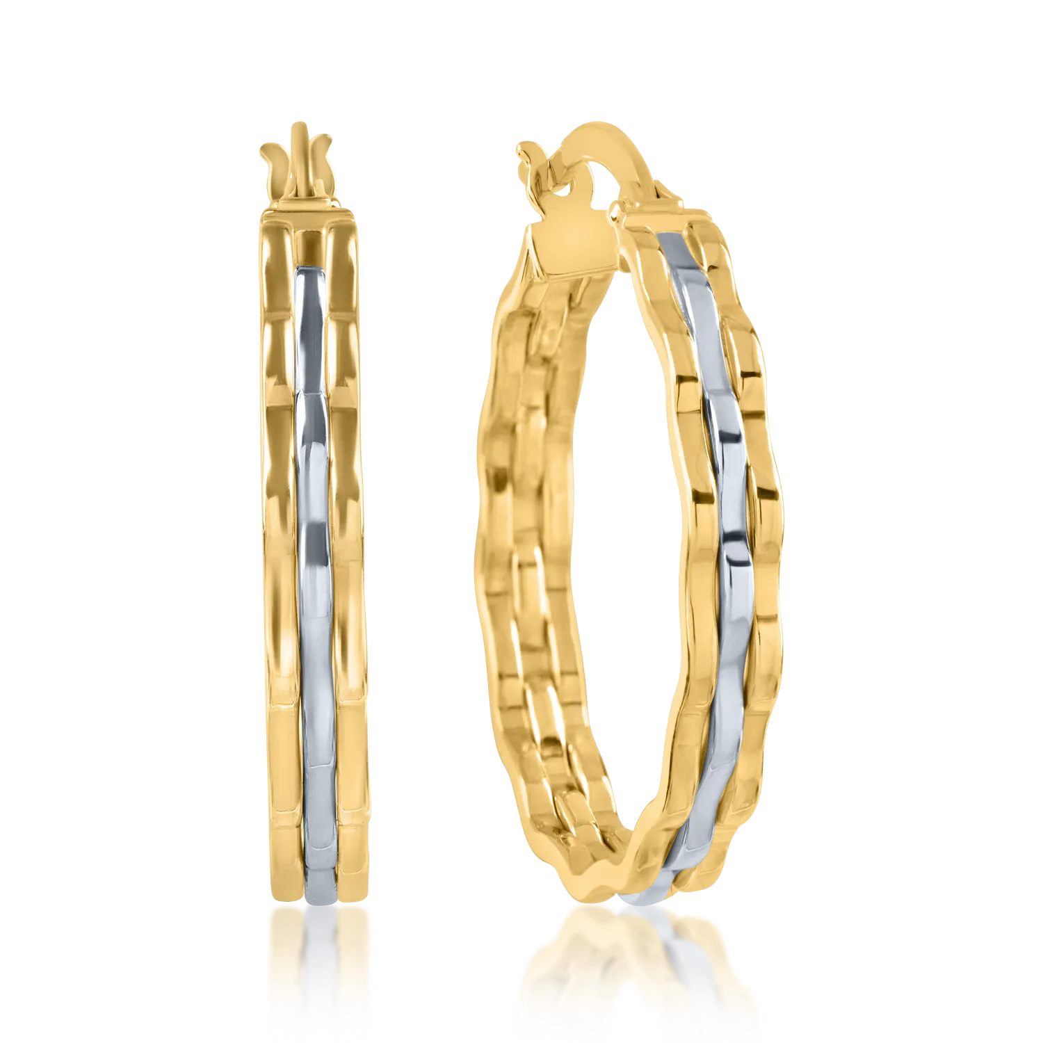 Bijuteria reprezinta alegerea ideala atunci cand doresti sa adaugi o nota proaspata tinutelor tale. Conceputa pentru a pastra amintiri, perechea de cercei din aur alb-galben surprinde nuantele stilului tau. TEILOR exploreaza feminitatea in toate formele ei.