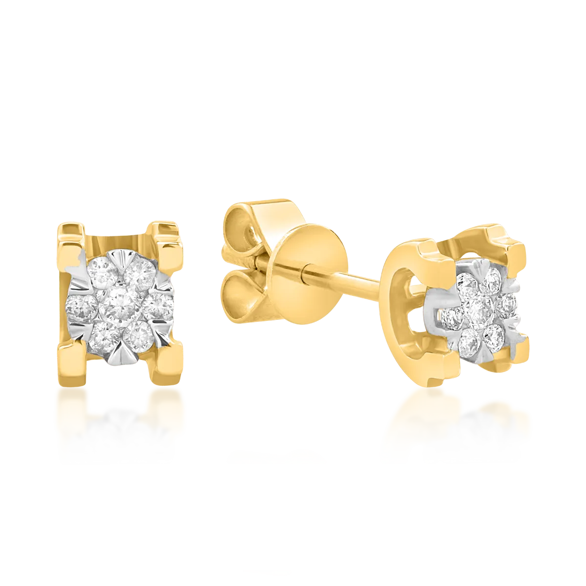 Cercei din aur alb-galben cu diamante de 0.102ct