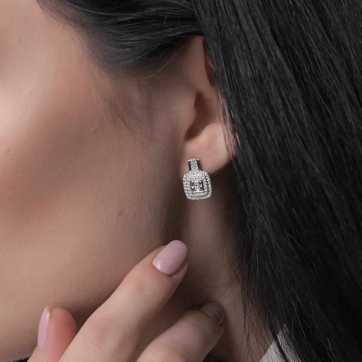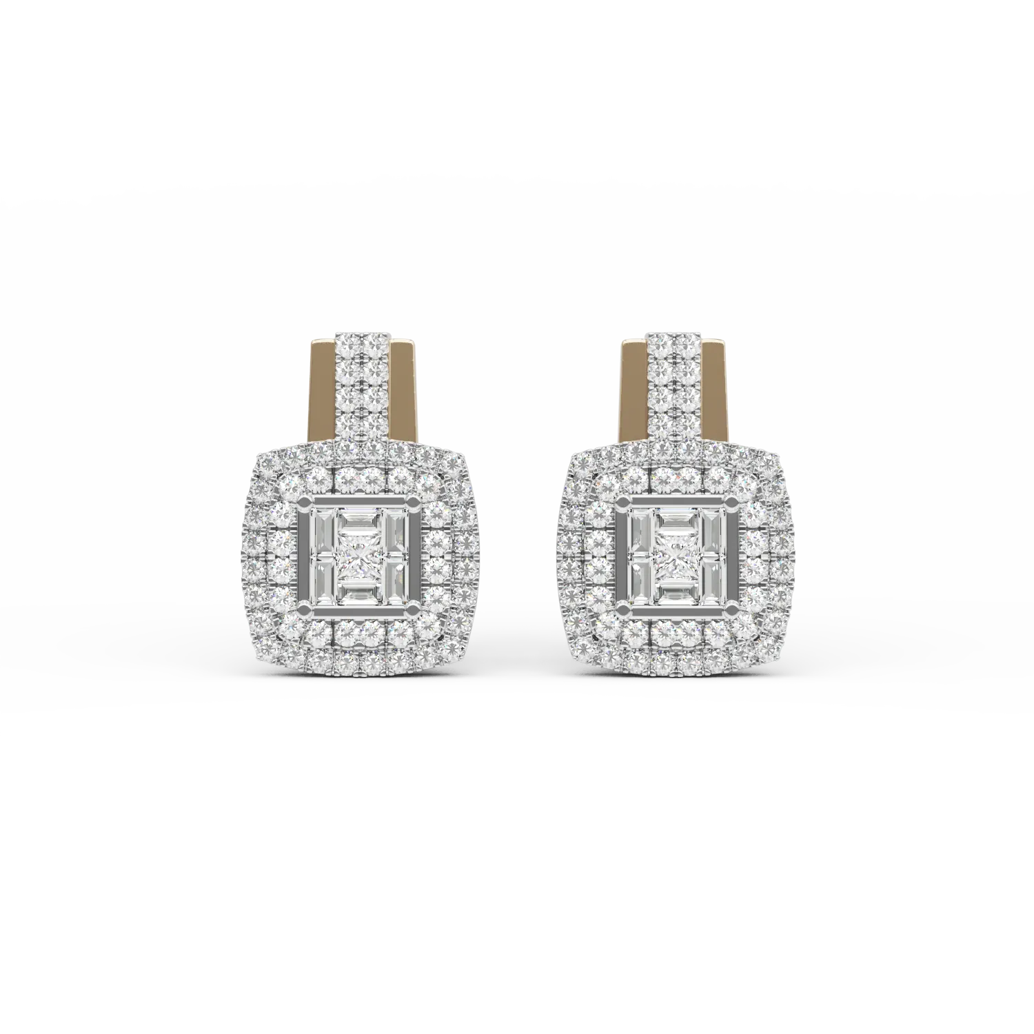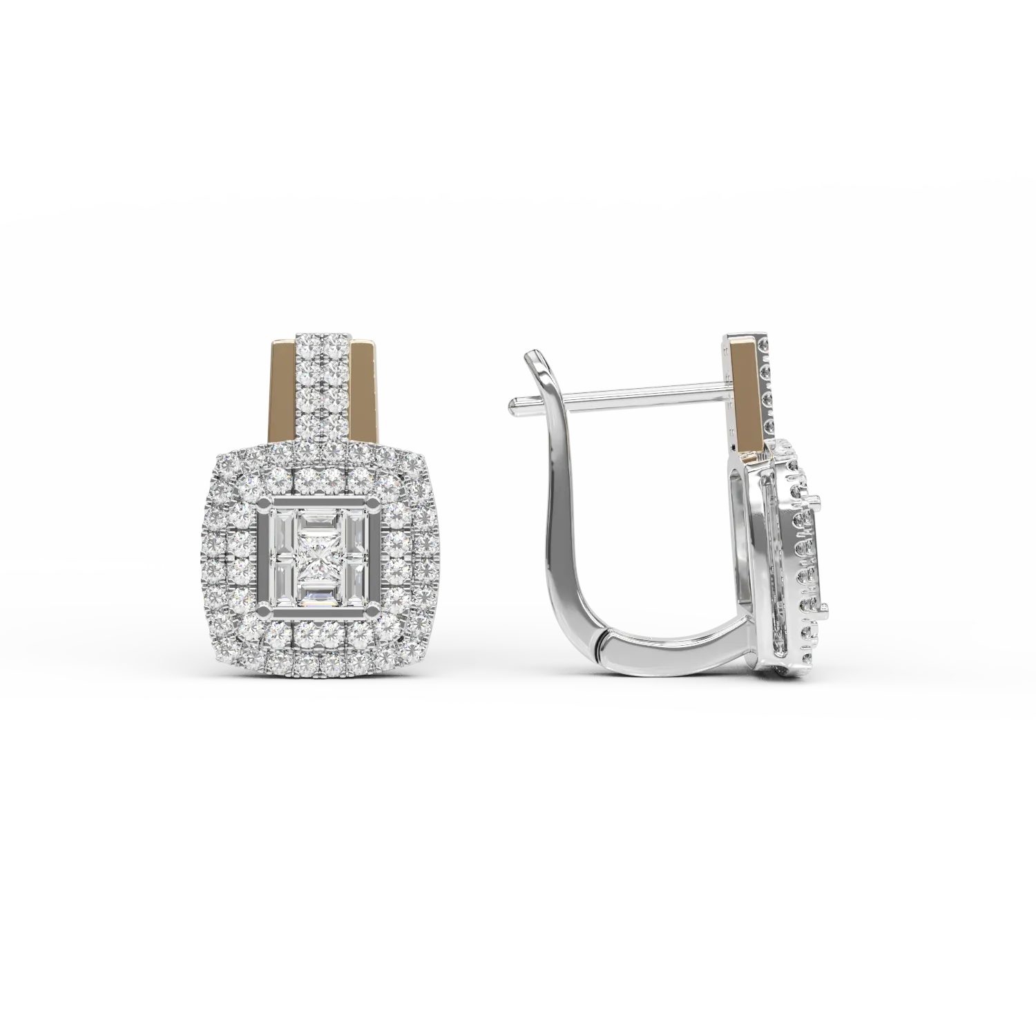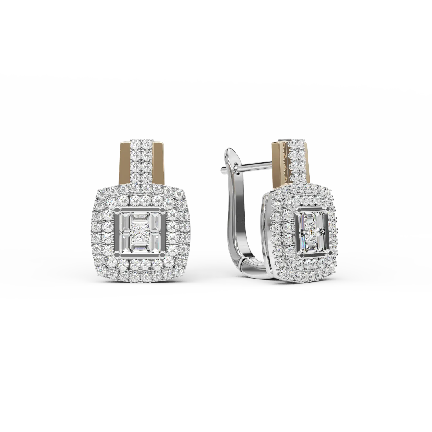 Cercei din aur alb-galben cu diamante princess,baguette si rotunde de 0.58ct