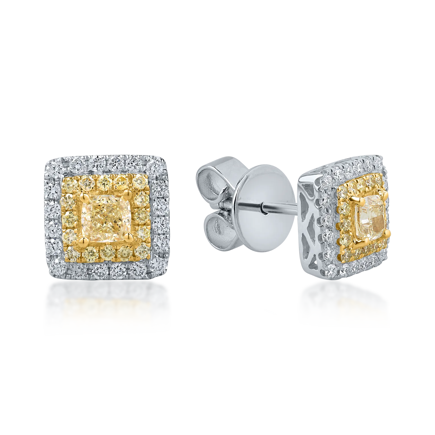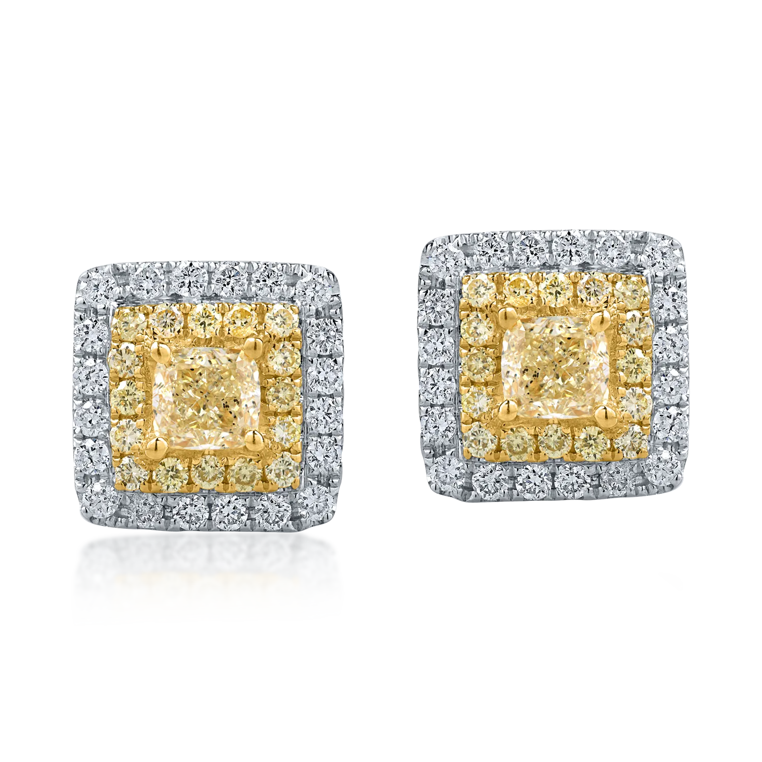 Cercei din aur alb-galben cu diamante roz rectangulare si rotunde si diamante incolore de 1.26ct