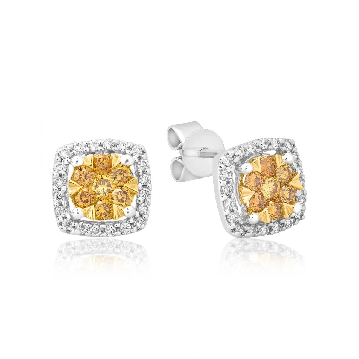 Cercei din aur alb-galben cu fancy diamonds de 0.314ct si diamante de 0.137ct