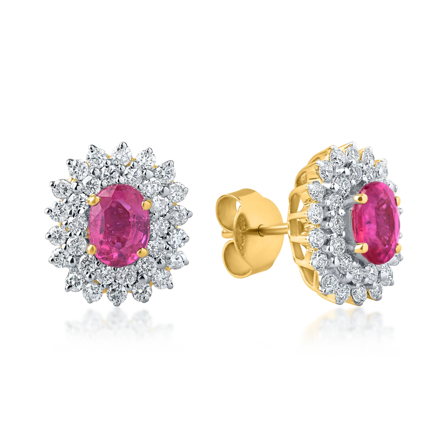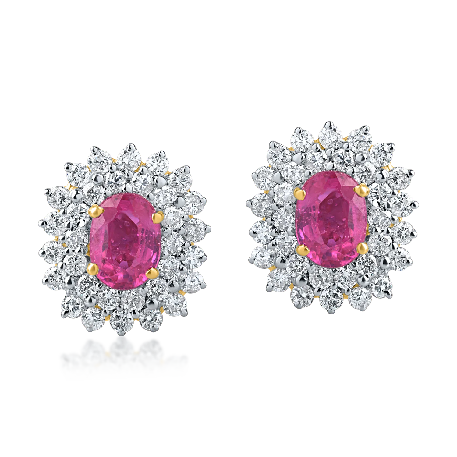 Cercei din aur alb-galben cu rubine ovale si diamante de 3.4ct