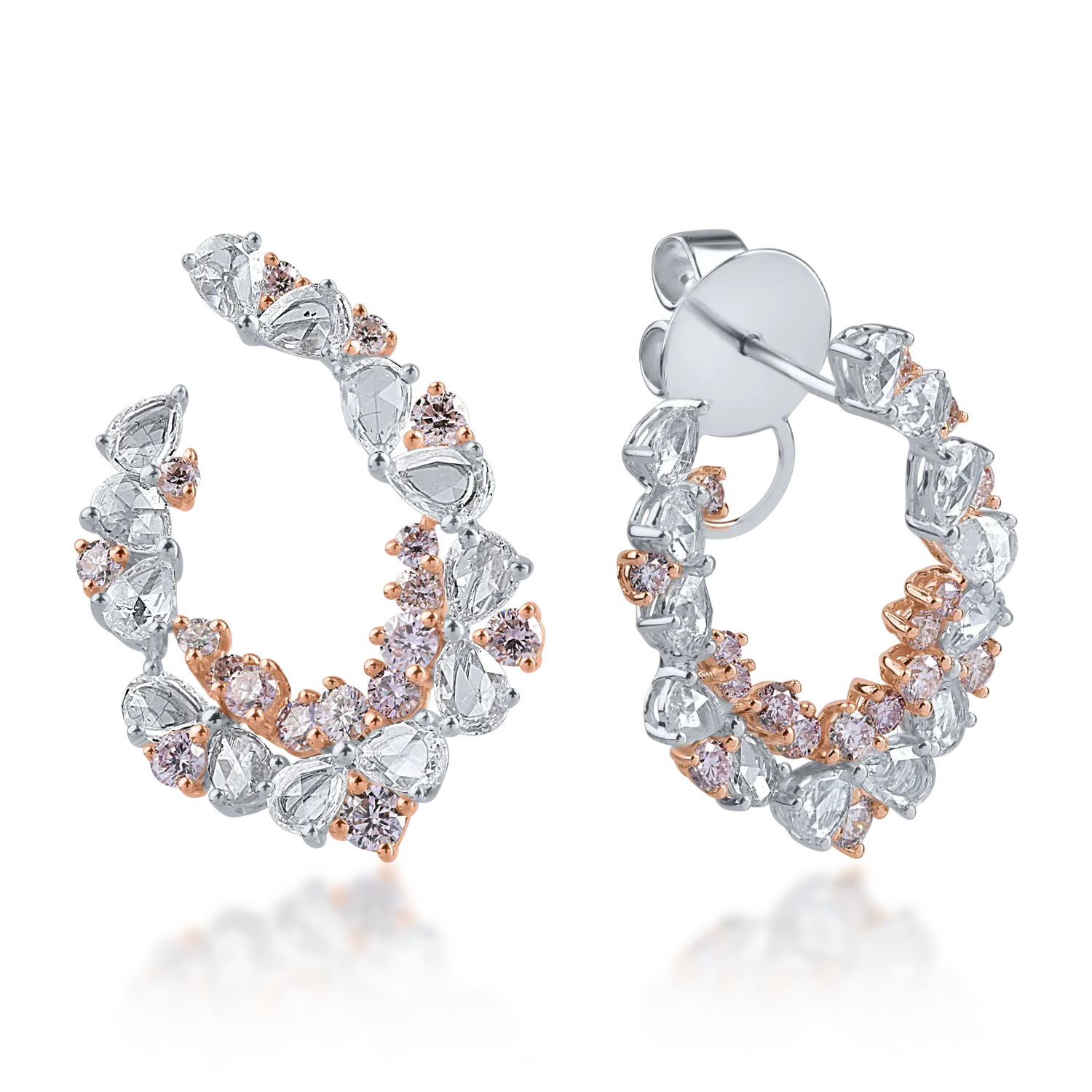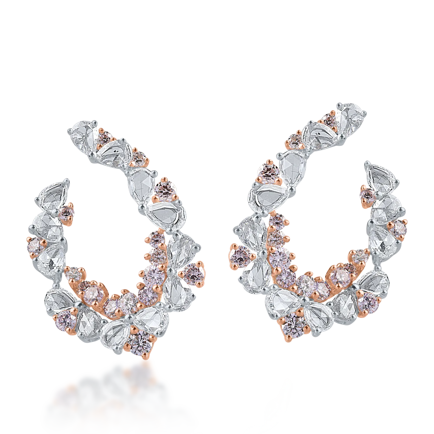 Cercei din aur alb-roz cu diamante incolore rose de 1.49ct si diamante roz round de 0.94ct