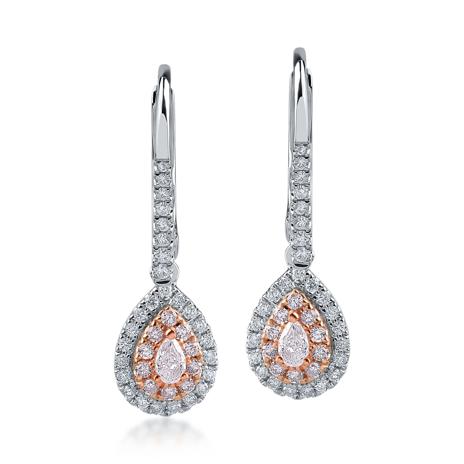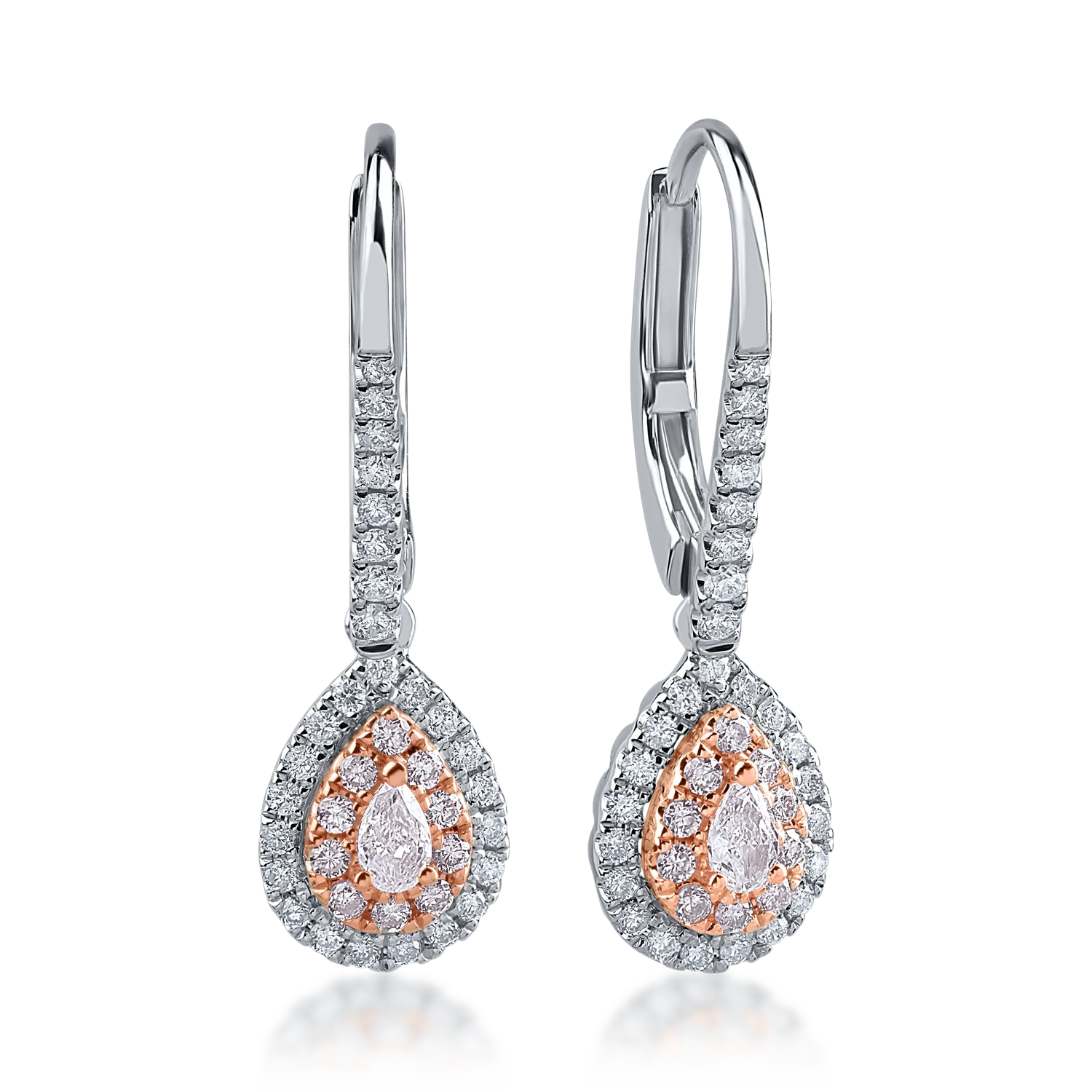 Cercei din aur alb-roz cu diamante roz pear si rotunde de 0.38ct si diamante incolore de 0.35ct
