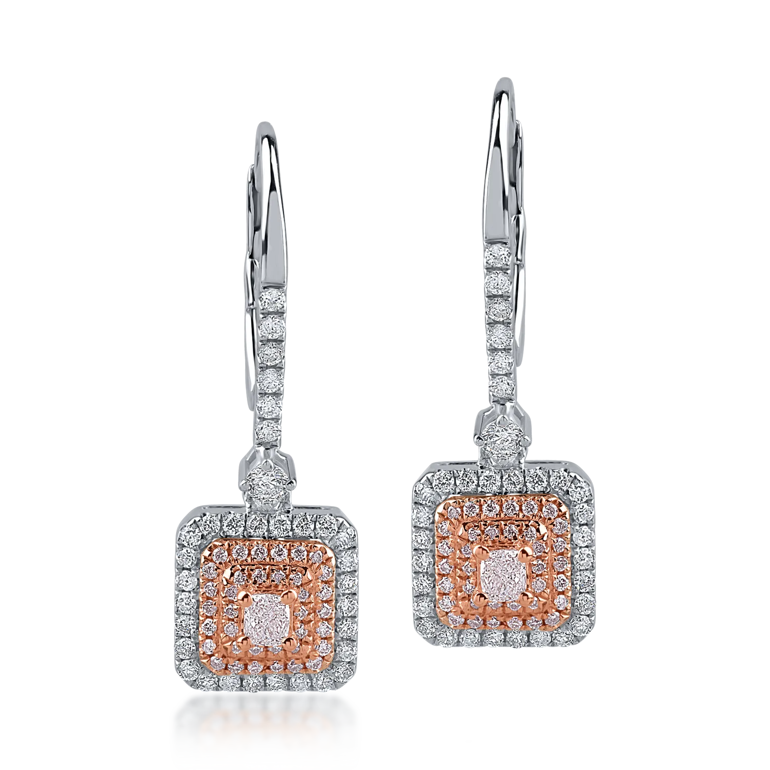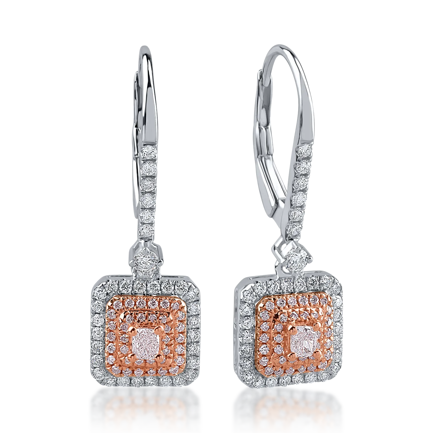 Cercei din aur alb-roz cu diamante transparente de 0.42ct si diamante roz de 0.32ct