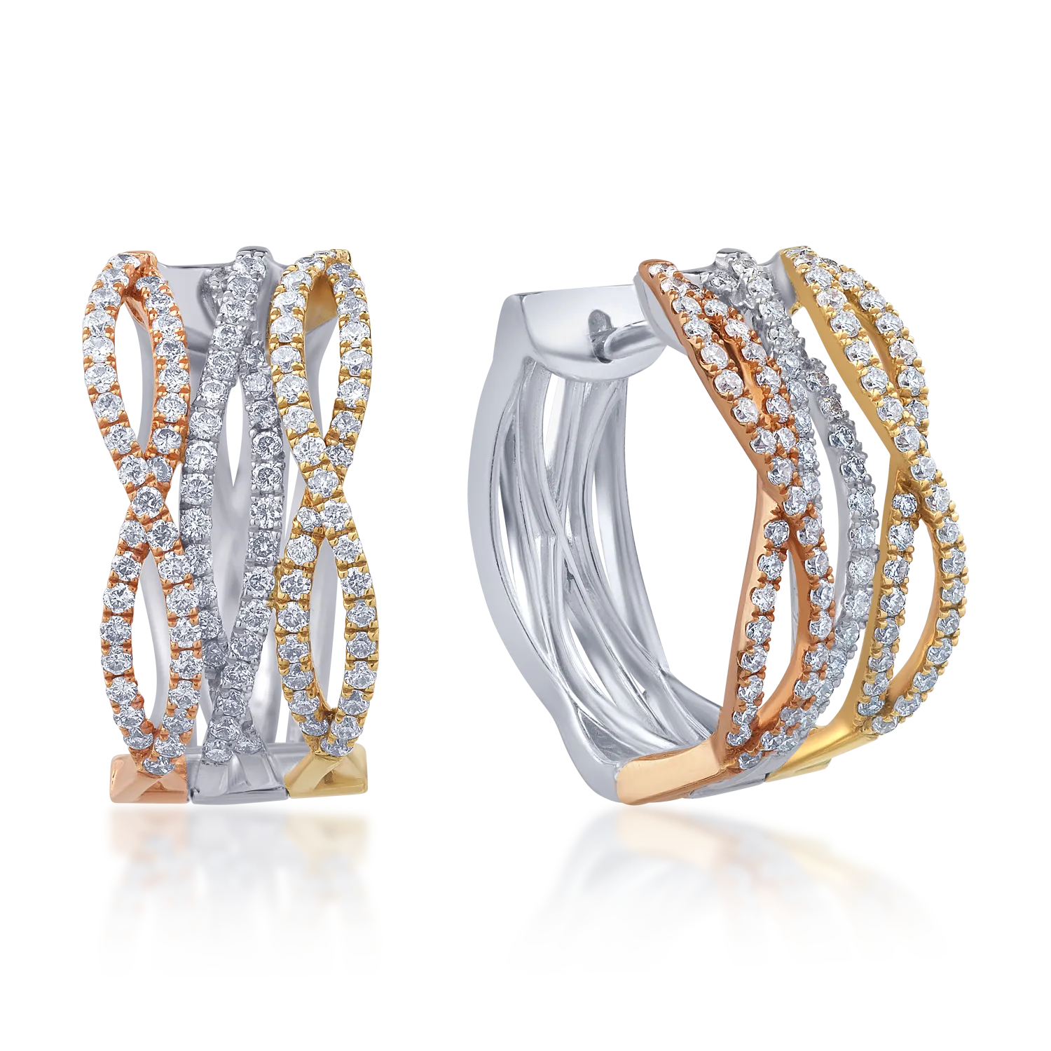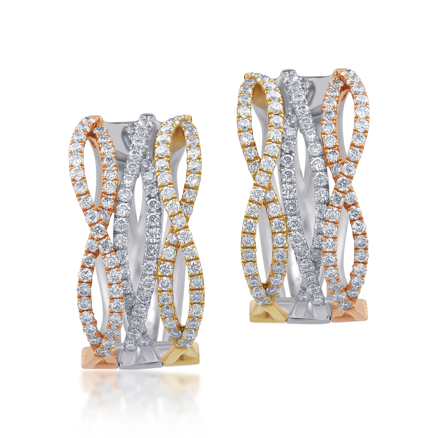 Cercei din aur alb-roz-galben cu diamante de 0.84ct