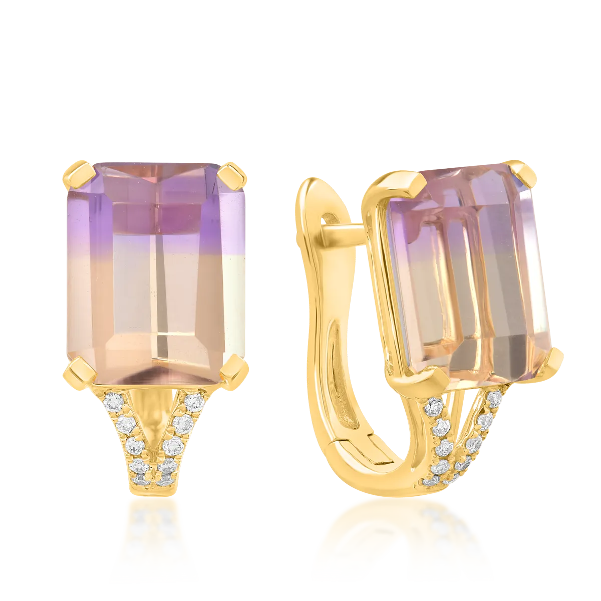 Cercei din aur galben cu ametrine octogonale de 6.29ct si diamante de 0.077ct
