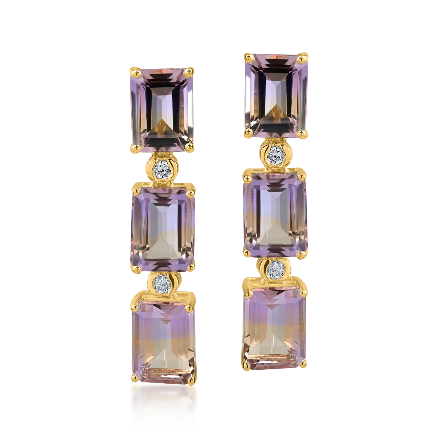 Cercei din aur galben cu ametrine octogonale de 9.3ct si diamante de 0.1ct