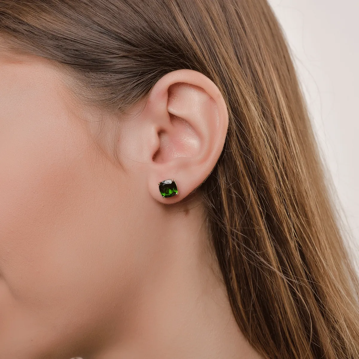 Cercei din aur galben cu cromdiopsid square de 4.35ct