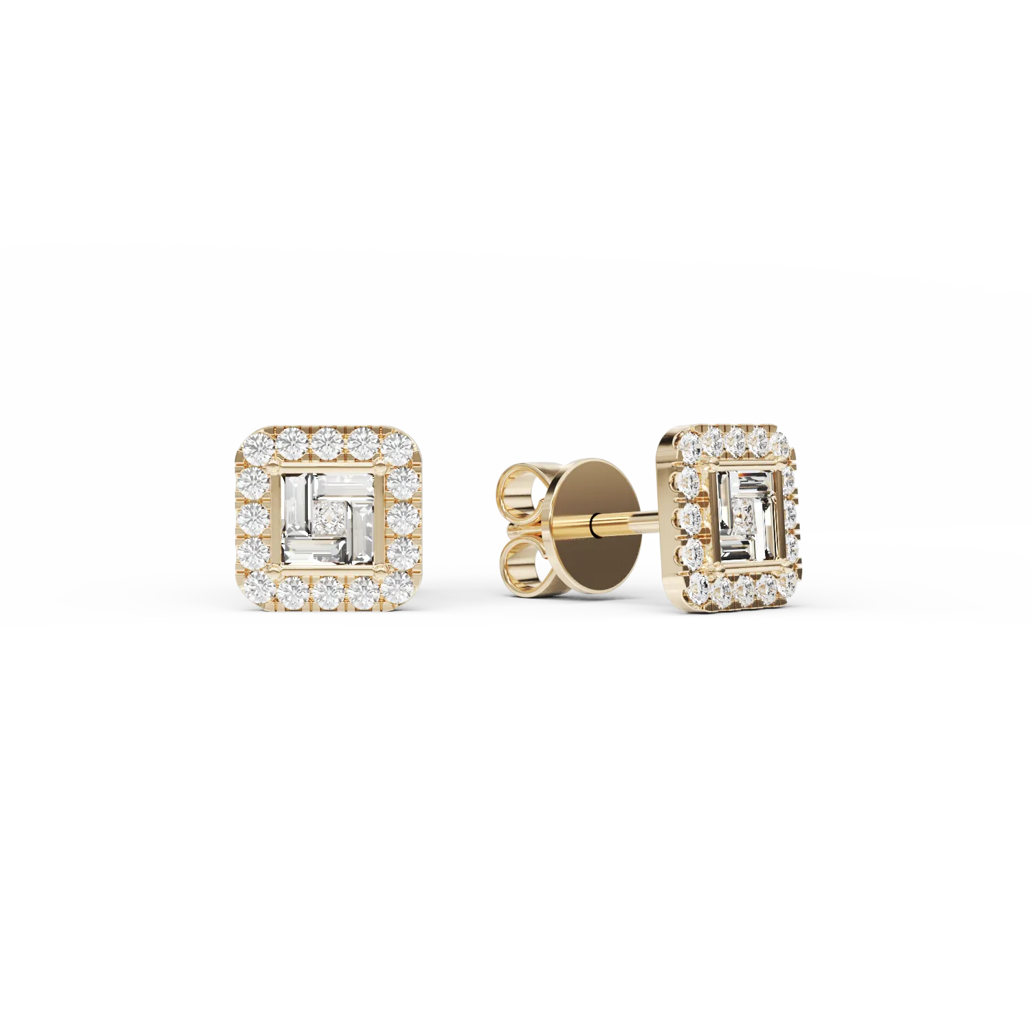 Cercei din aur galben cu diamante baguette, princess si rotunde de 0.77ct
