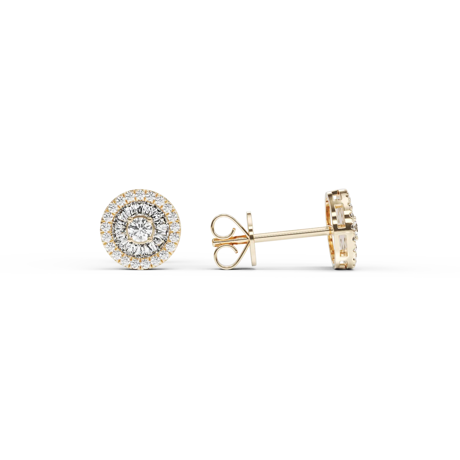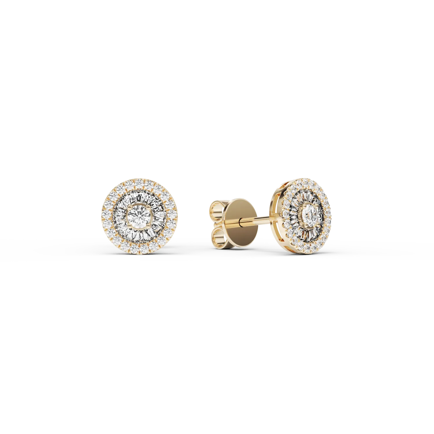 Cercei din aur galben cu diamante baguette si rotunde de 0.36ct