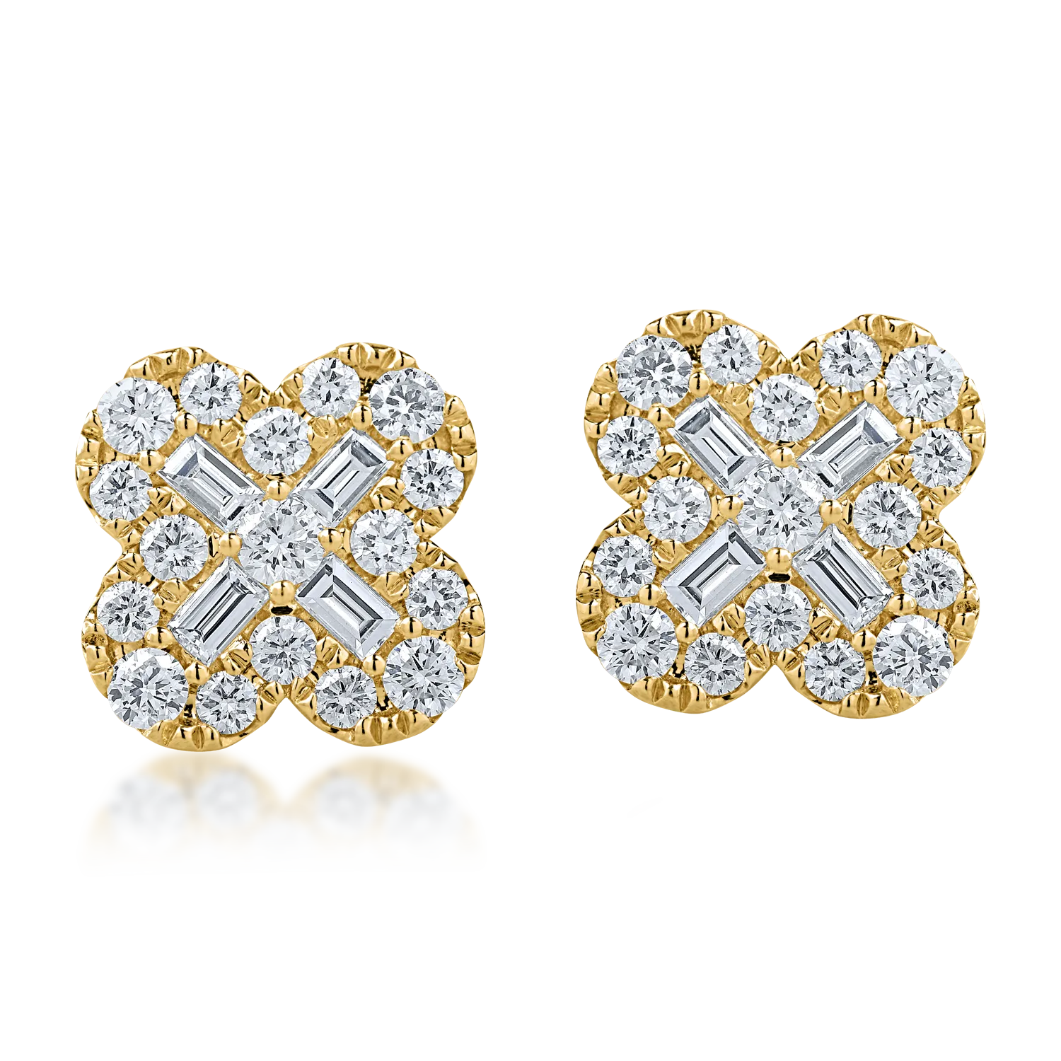 Cercei din aur galben cu diamante baguette si rotunde de 1.8ct