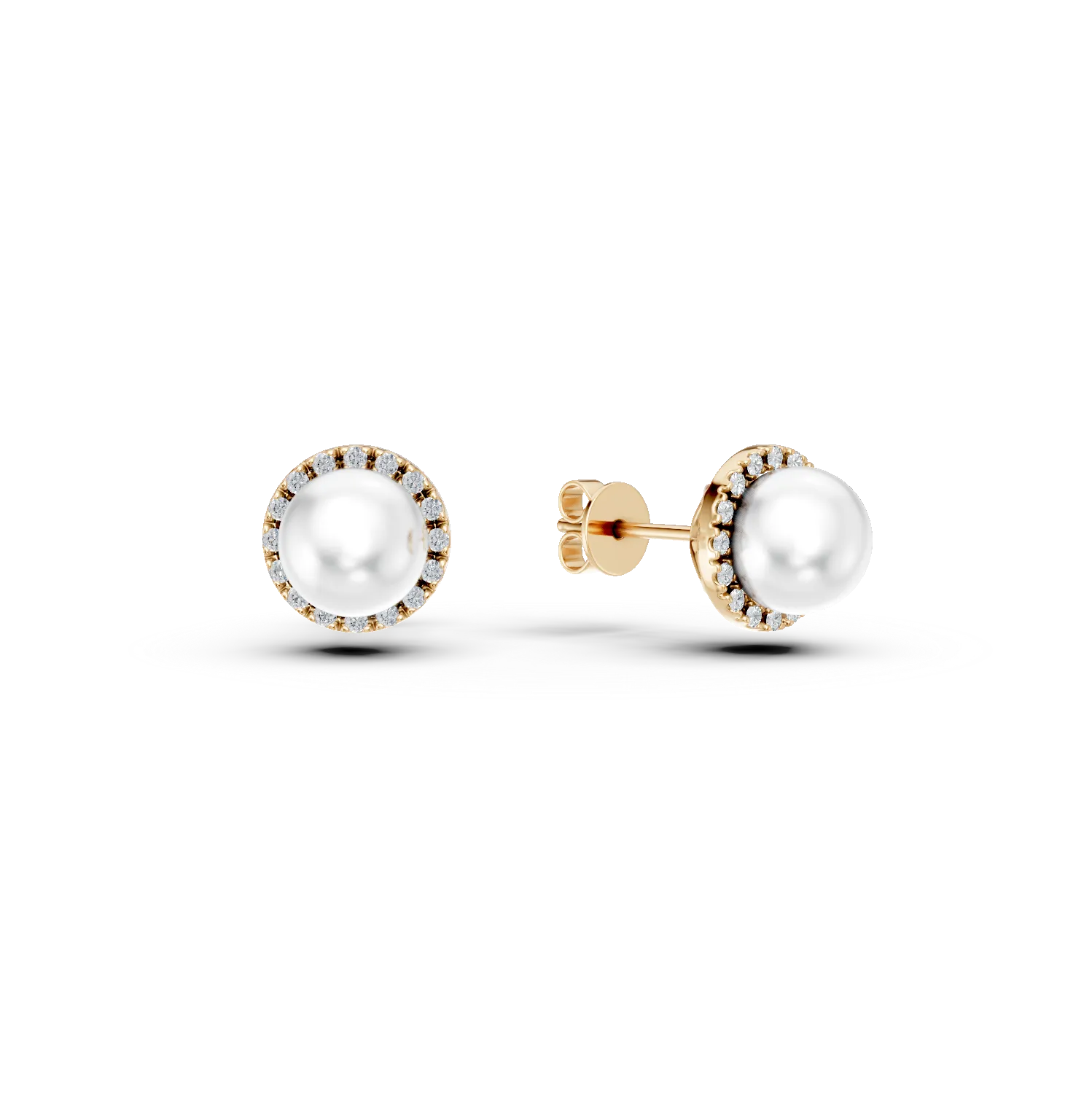 Cercei din aur galben cu diamante de 0.093ct si perle de cultura