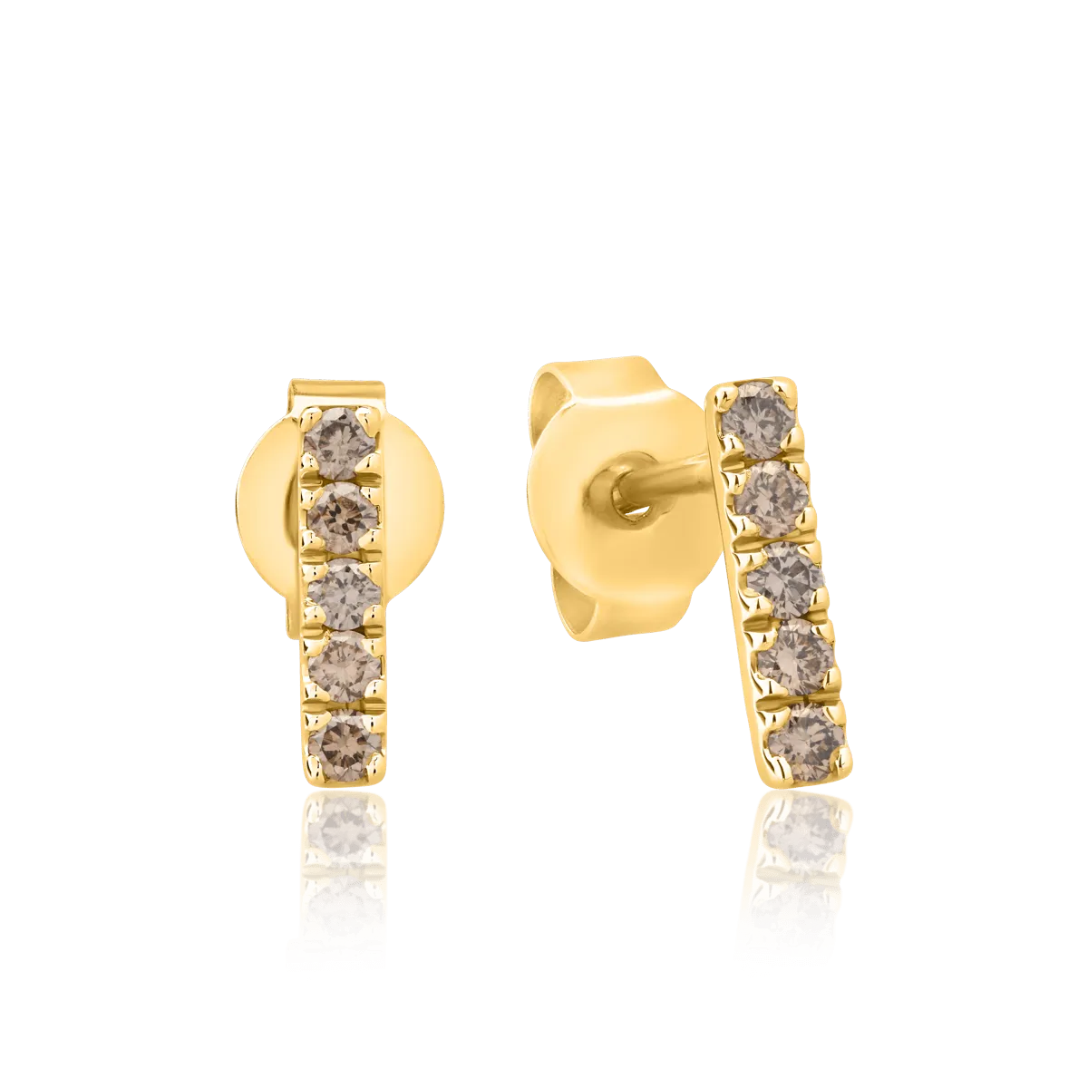 Paseste in lumea seducatoare a bijuteriilor pregatite sa cucereasca inimi si priviriCerceii din aur galben cu diamante maro de 0.2ct stralucesc intr-un joc hipnotizant de nuante, intensificat de fiecare raza de lumina. Completeaza orice tinuta si vorbeste despre latura ta feminina. in fiecare zi. Cu fiecare pas.