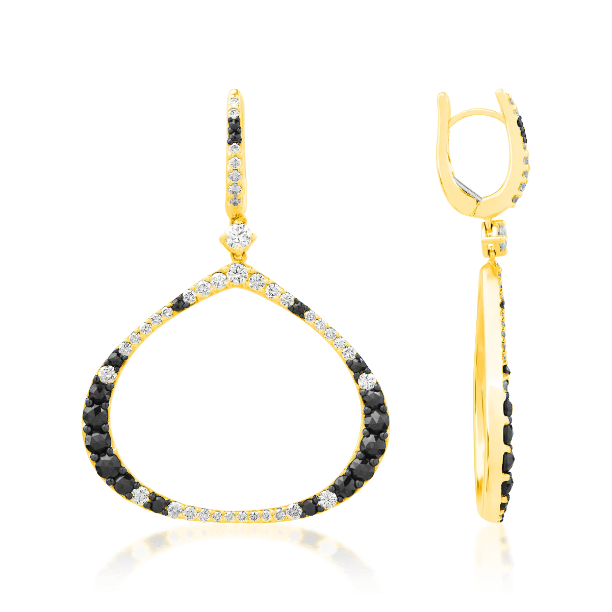 Cercei din aur galben cu diamante negre de 1.62ct si diamante transparente de 1.41ct