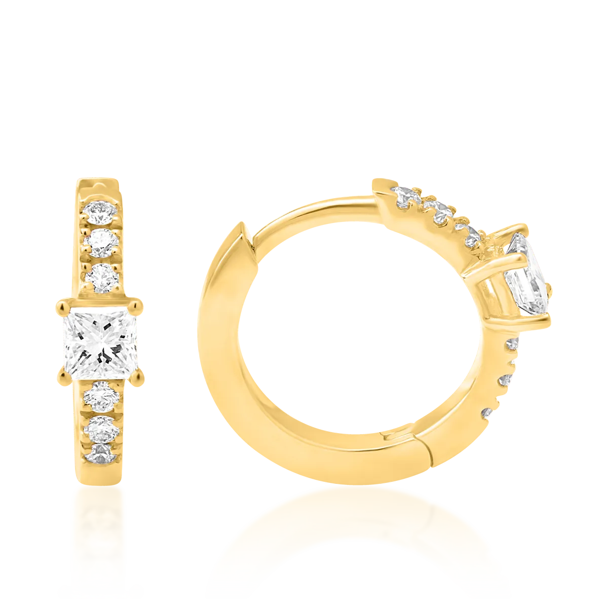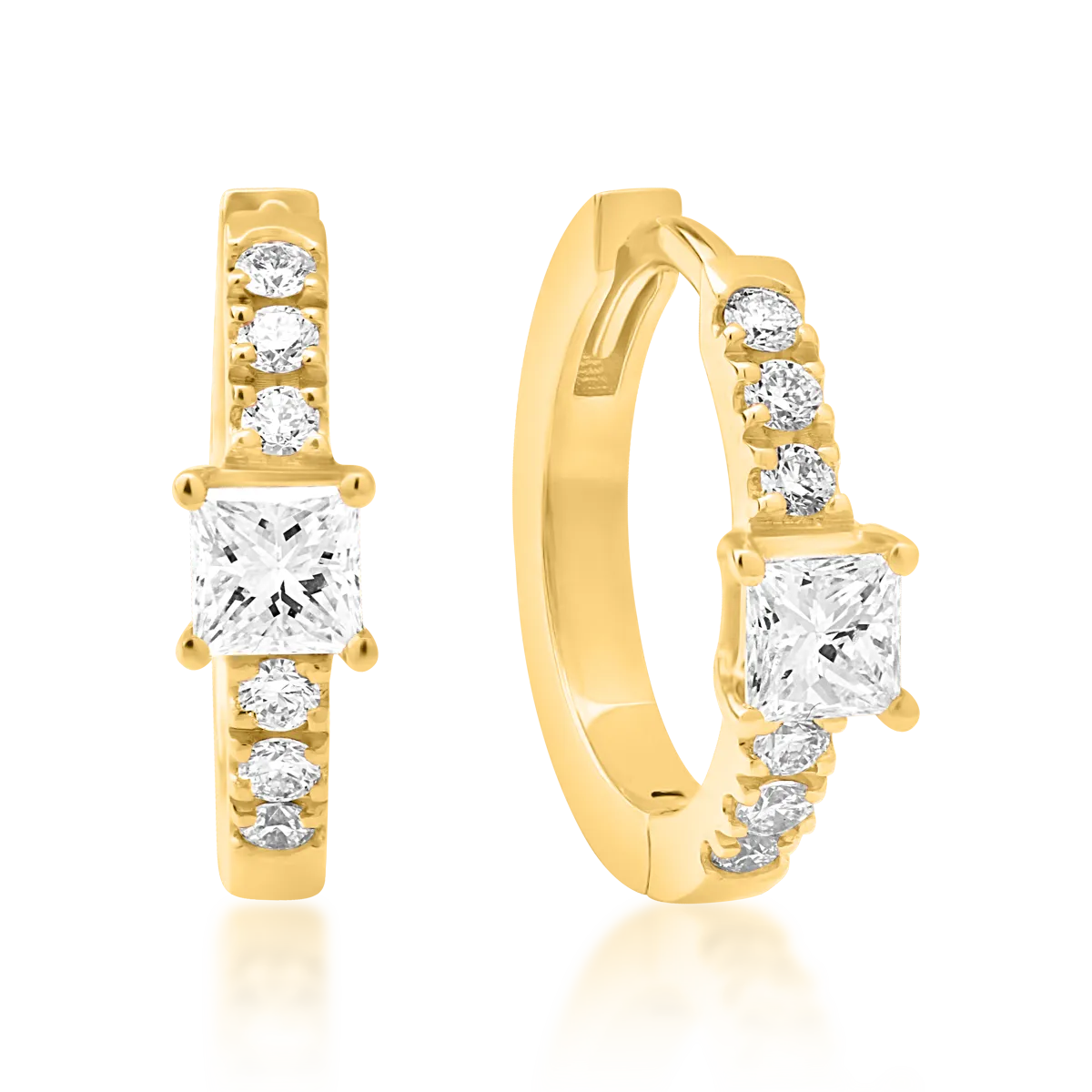 Cercei din aur galben cu diamante princess si rotunde de 0.19ct