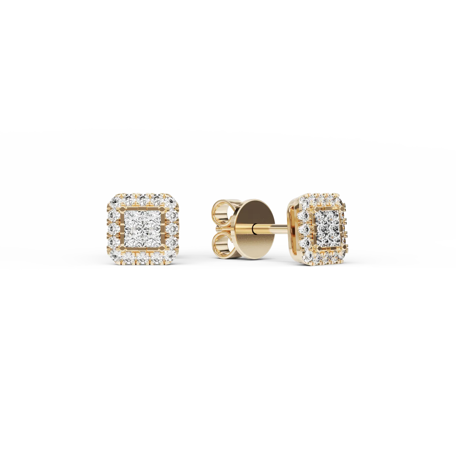 Cercei din aur galben cu diamante princess si rotunde de 0.37ct