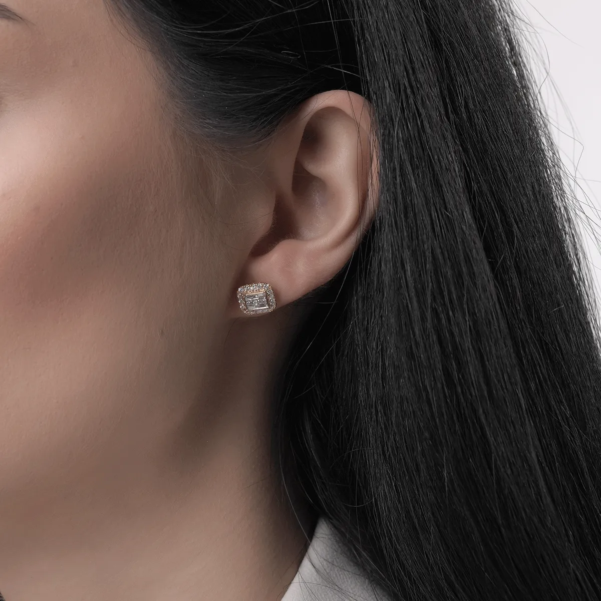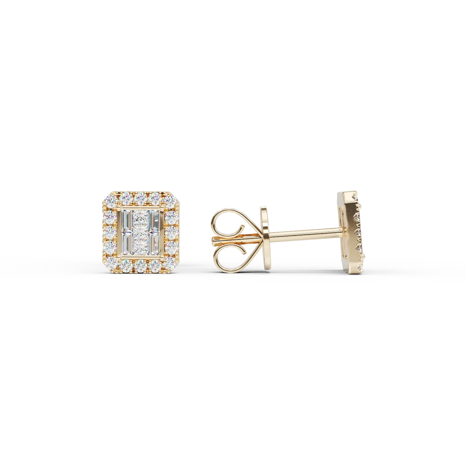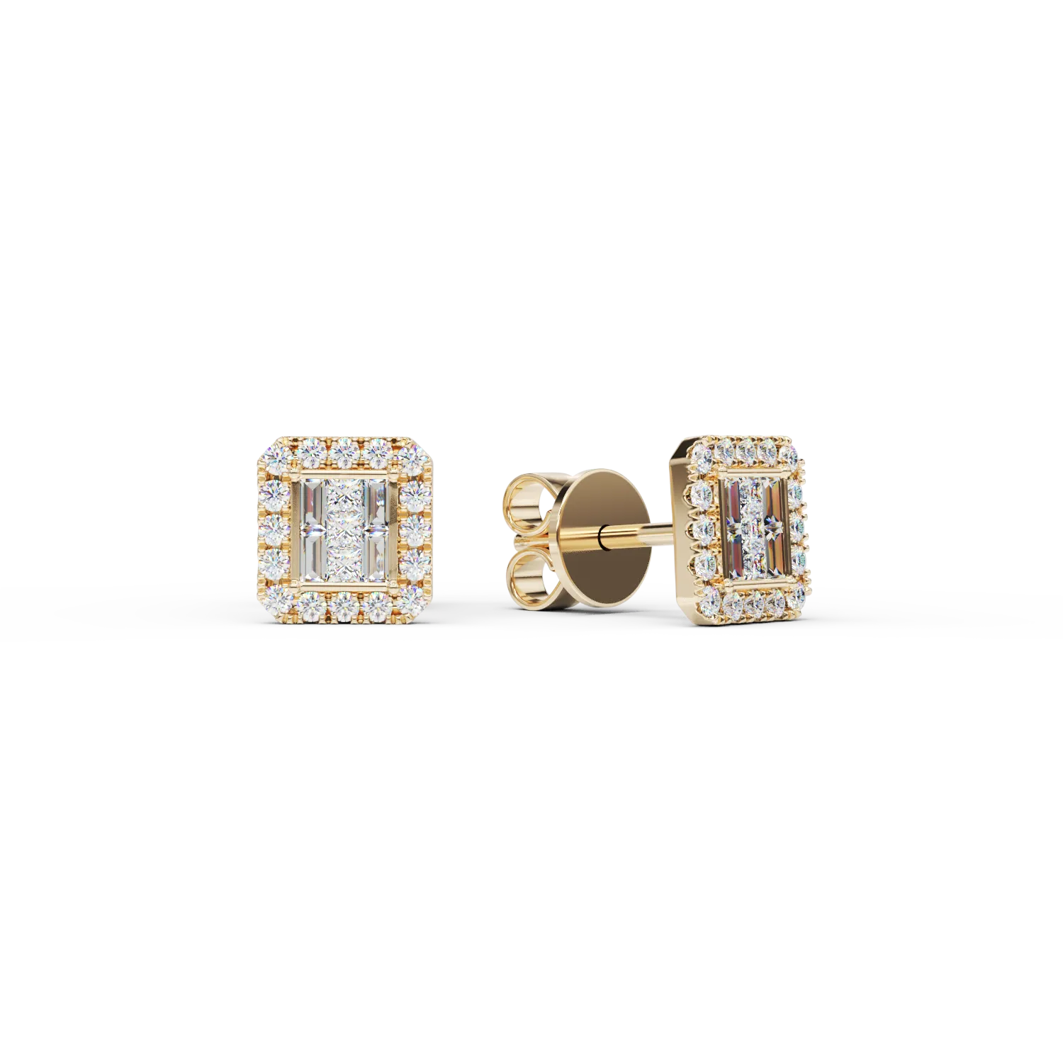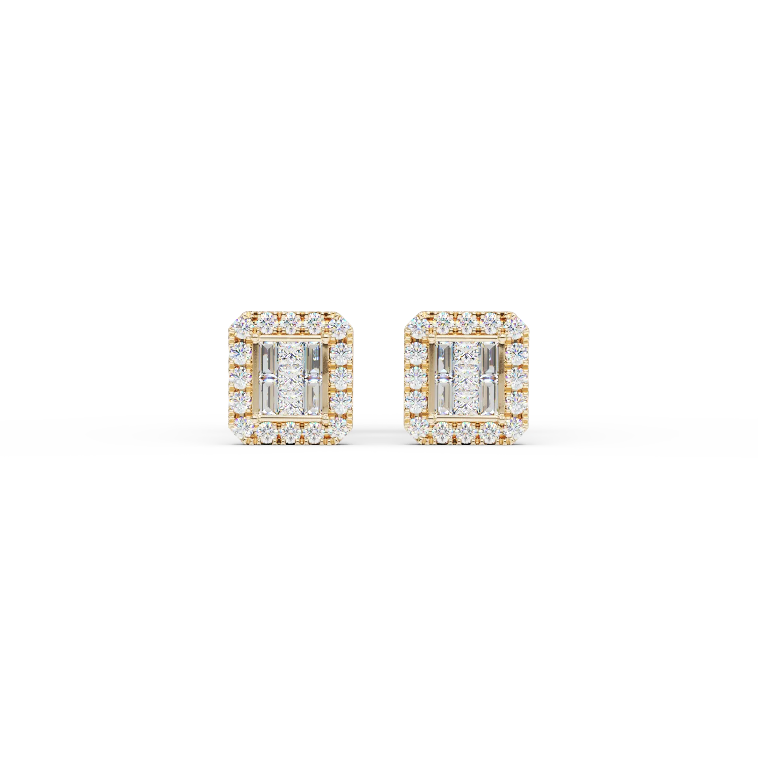 Cercei din aur galben cu diamante princess,baguette si rotunde de 0.59ct